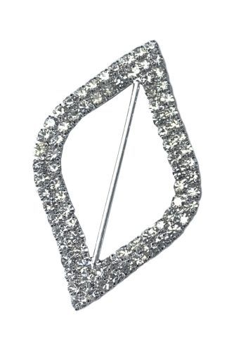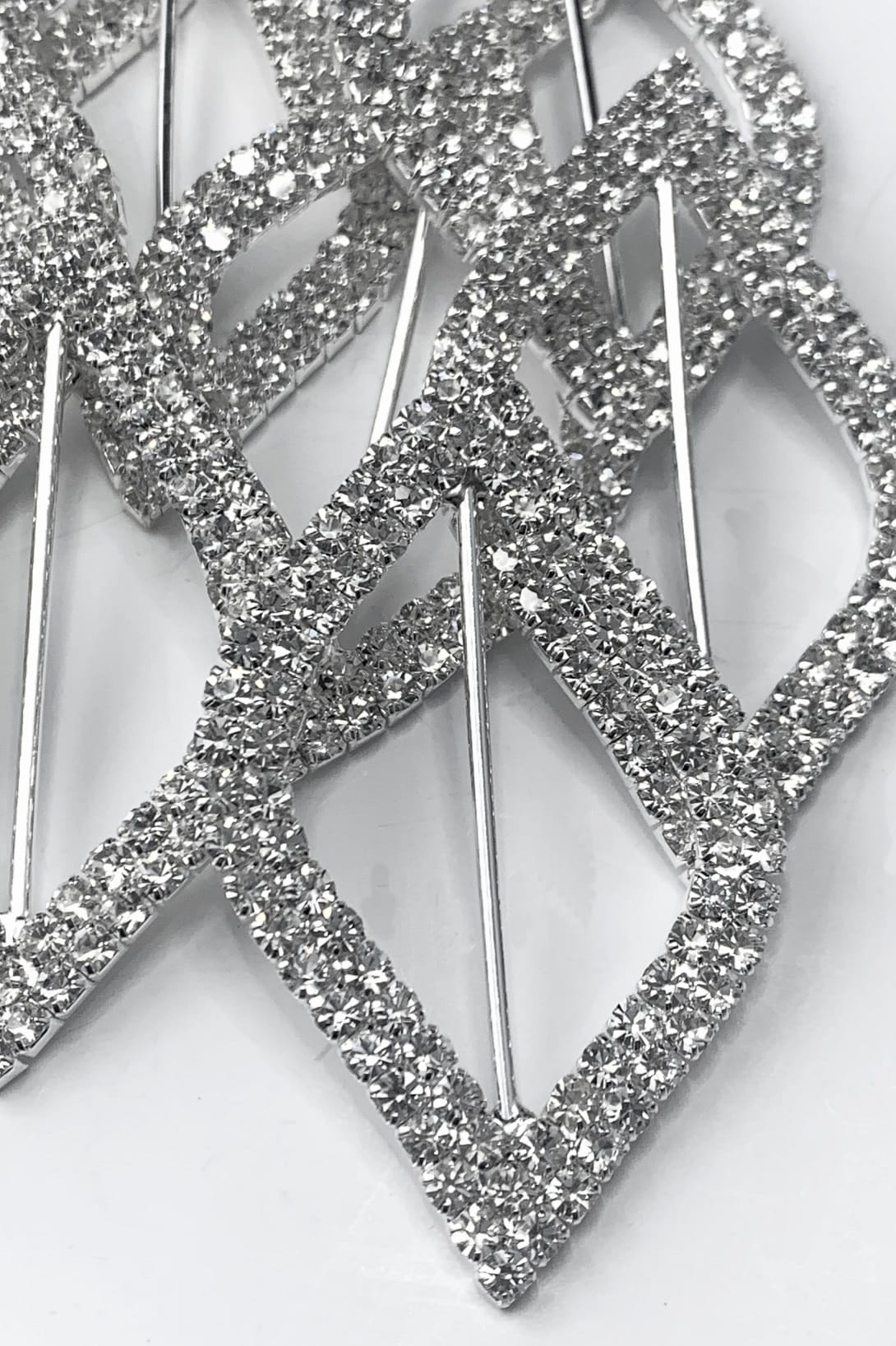 Klamra do przyszycia. Metalowa, w kolorze srebra, bogato zdobiona szklanymi cyrkoniami. Idealna do ozdabiania ubrań, butów, serwetek czy do scrapbookingu i rękodzieła.