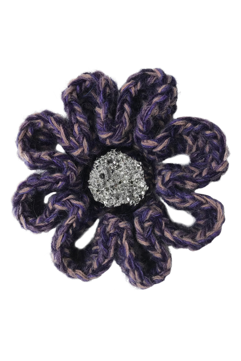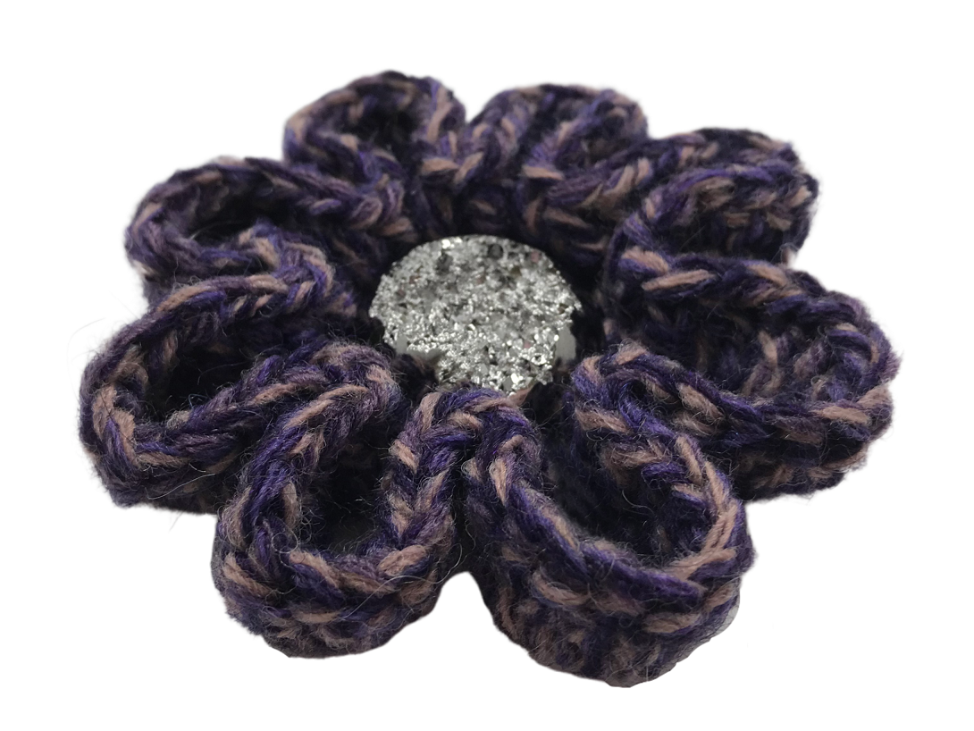 KWIATEK HANDMADE SZYDEŁKOWY Z KAMIENIEM DUŻY FIOLETOWY 10 cm