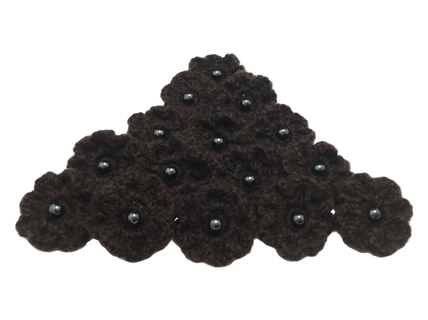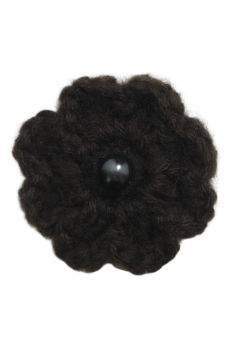 KWIATEK HANDMADE SZYDEŁKOWY Z KORALIKIEM - BRĄZOWY 4,5 cm