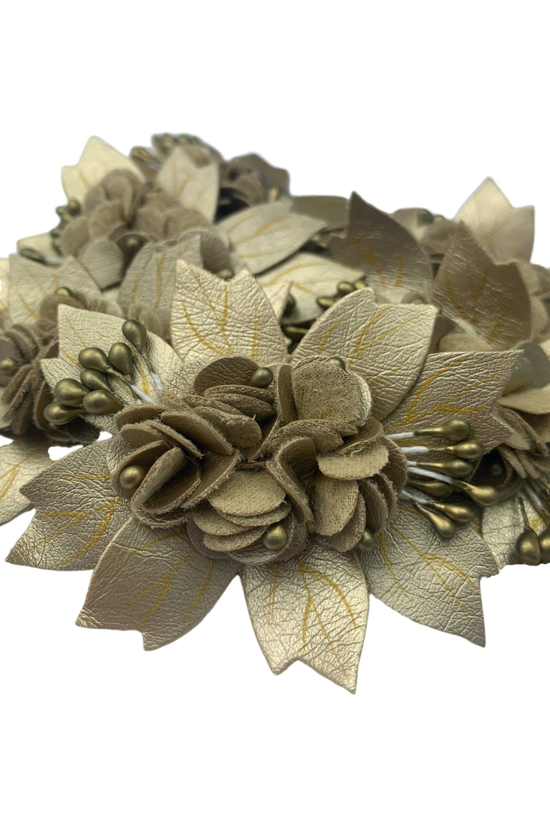 Przestrzenna aplikacja z motywem kwiatowym, wykonana z eco skóry. Kolor beżowy.