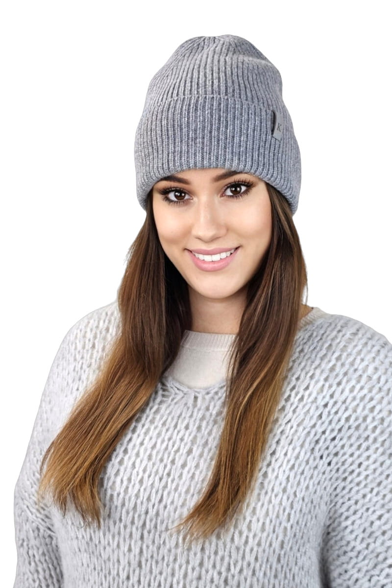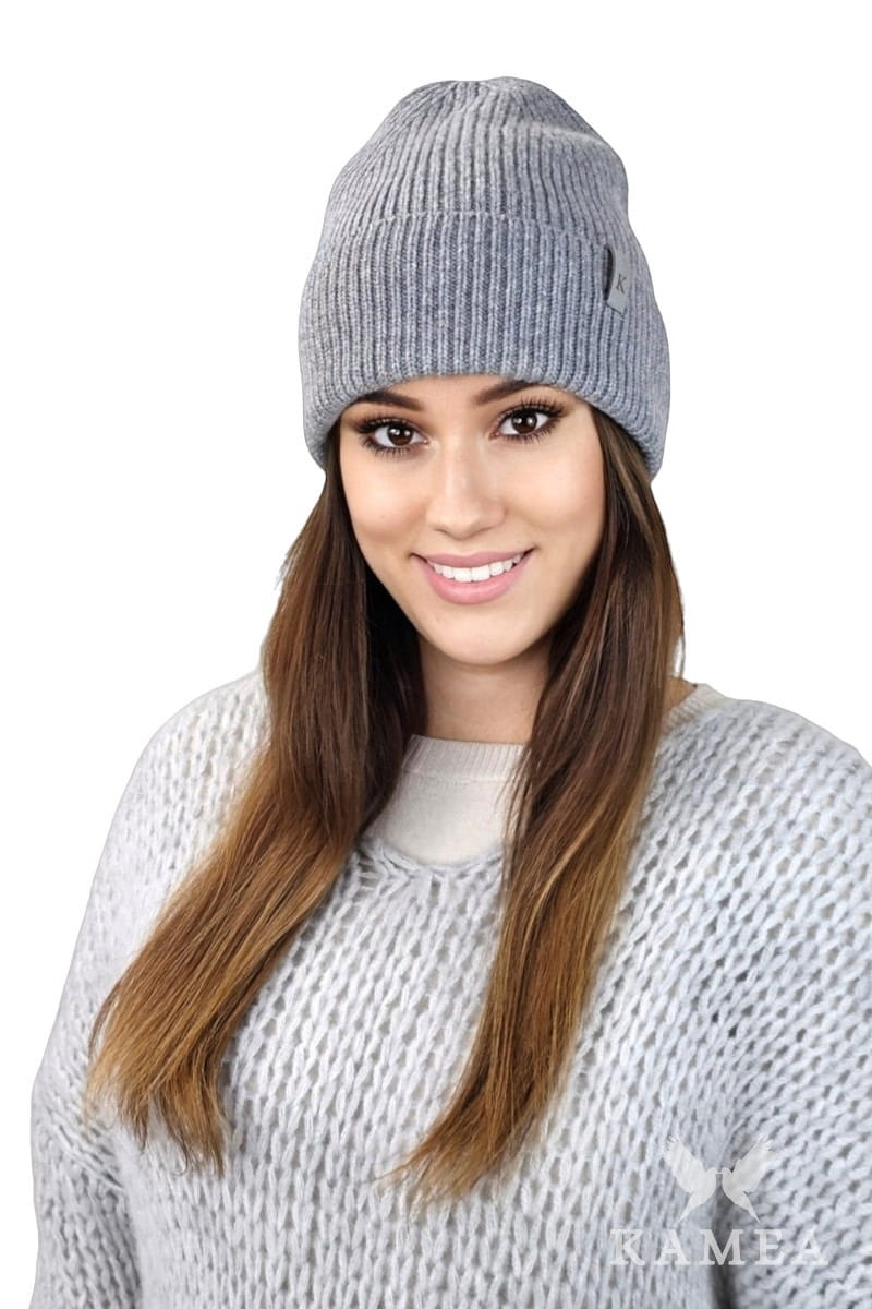 Kaszmirowa Czapka W Prążek Z Wywinieciem Kolor Szary Kamea-Malibu