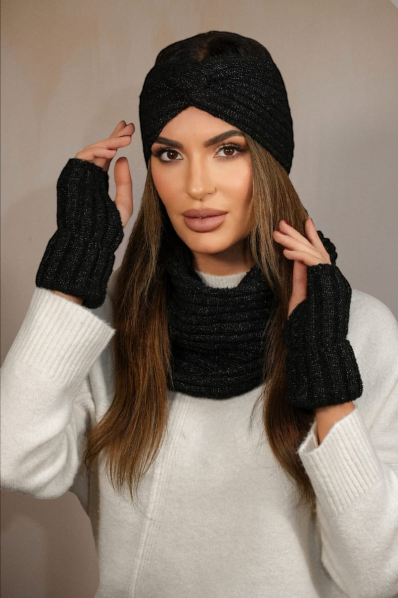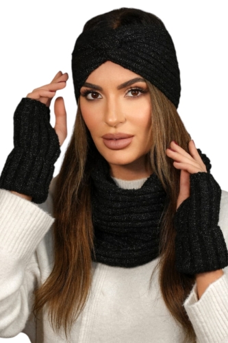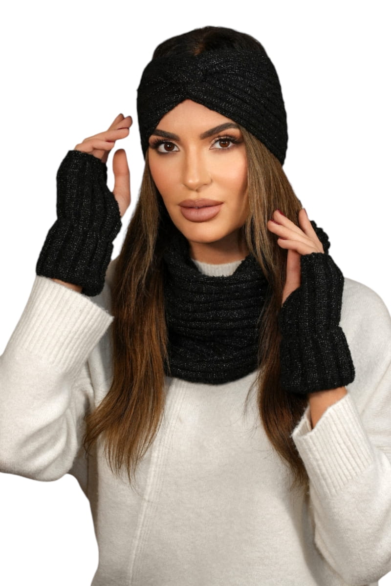 Komplet Opaska Z Kominem, Materiał Z Błyskiem Kolor Czarny Kamea- Boogi