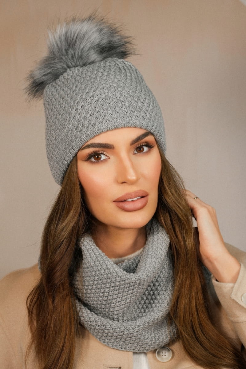 Komplet czapka z kominem RUBBI zimowy kolor szary