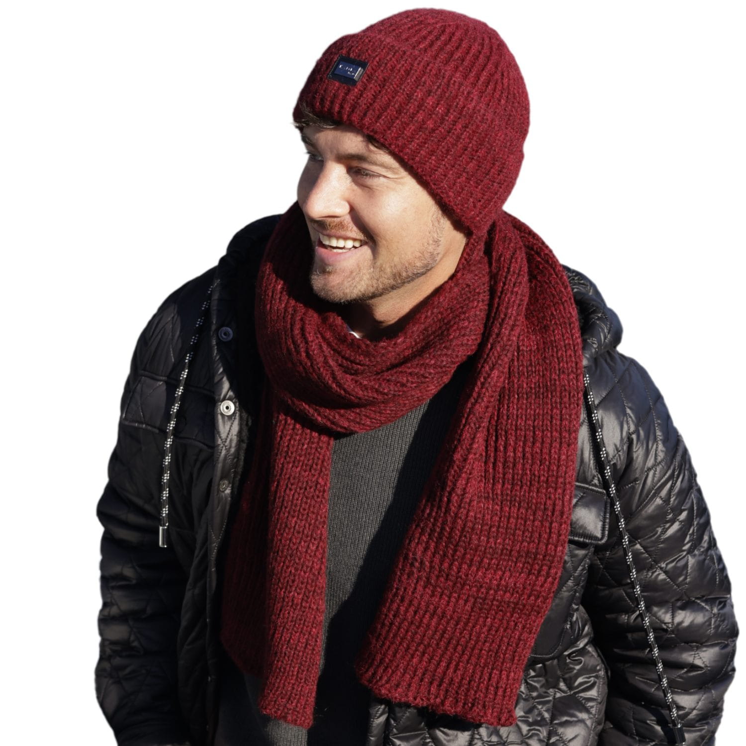 MARTIN w kolorze bordowym to spójny duet na chłodne dni: czapka beanie bez podszewki i szalik w tej samej, elastycznej dzianinie. Skład 85% akryl / 15% wełna łączy ciepło z łatwą pielęgnacją. Czapka 54–62 cm. Wyprodukowano w Polsce.
