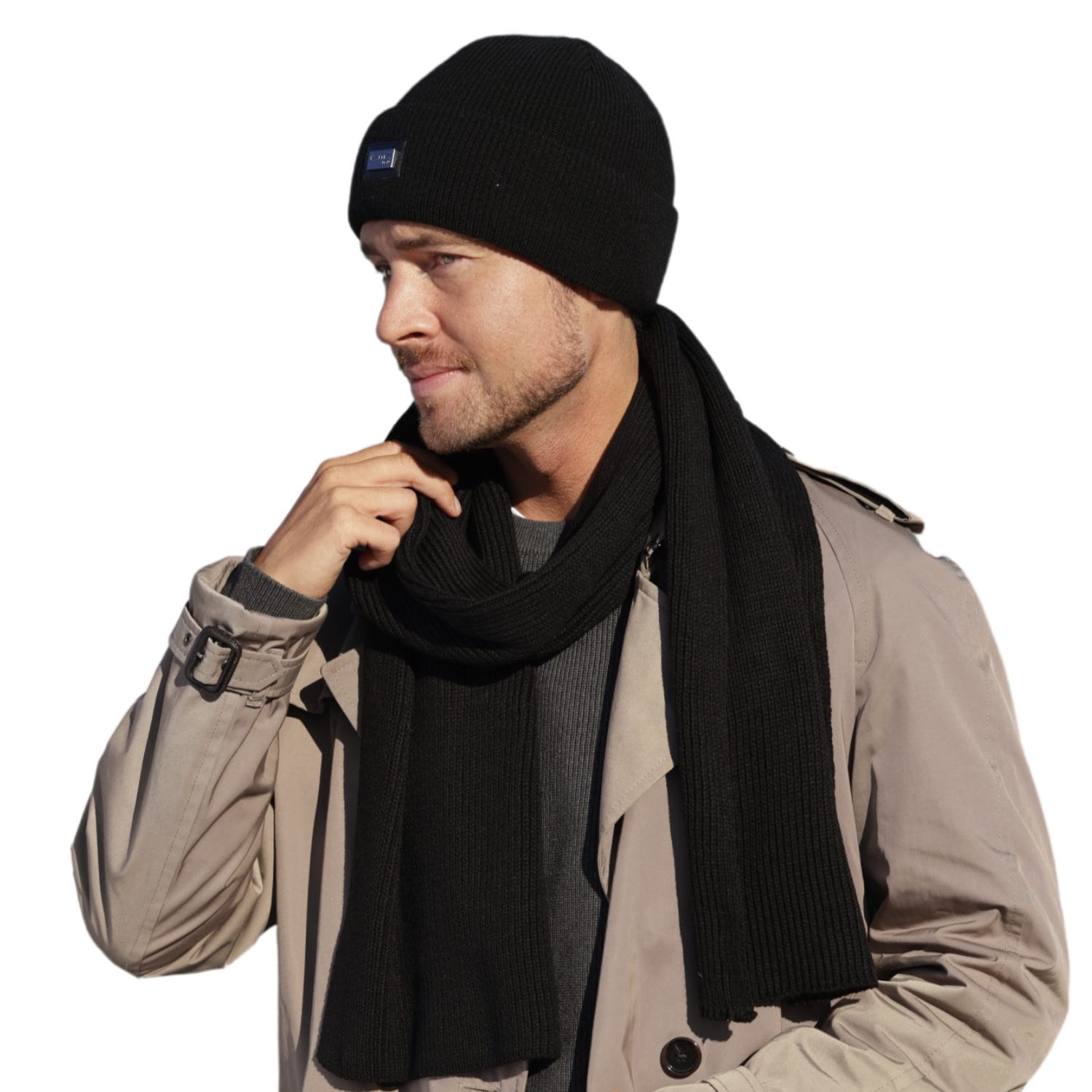 Komplet męski czarny — czapka i szalik OLIVER, 100% akryl