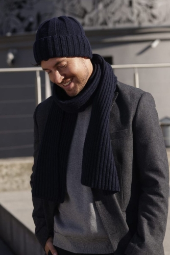 Komplet męski BEN — czapka i szalik granatowy | KAMEA