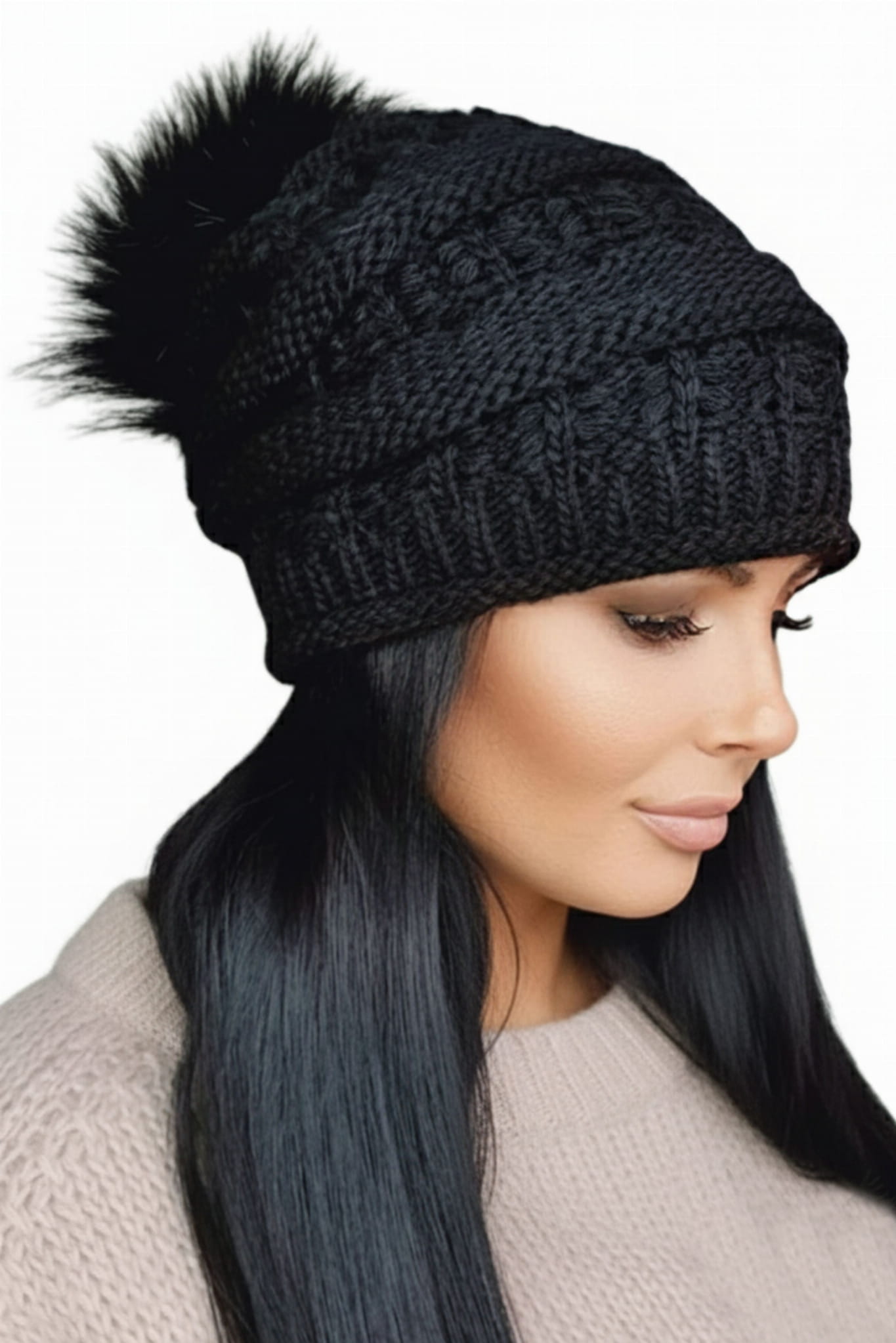 Produkt charakteryzują wyjątkowo piękne sploty zwieńczone dużym, puszystym pomponem.