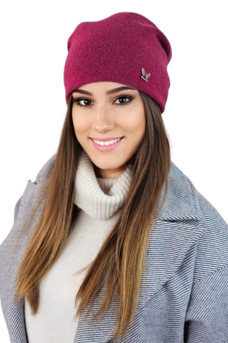 LILY gładka wełniana czapka damska z logo kolor fuksja