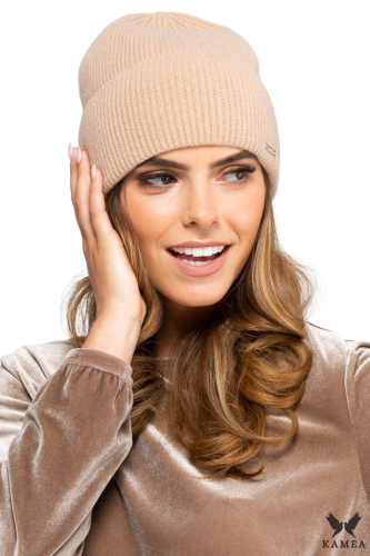 MODESTO czapka damska kaszmirowa ciemno beżowa