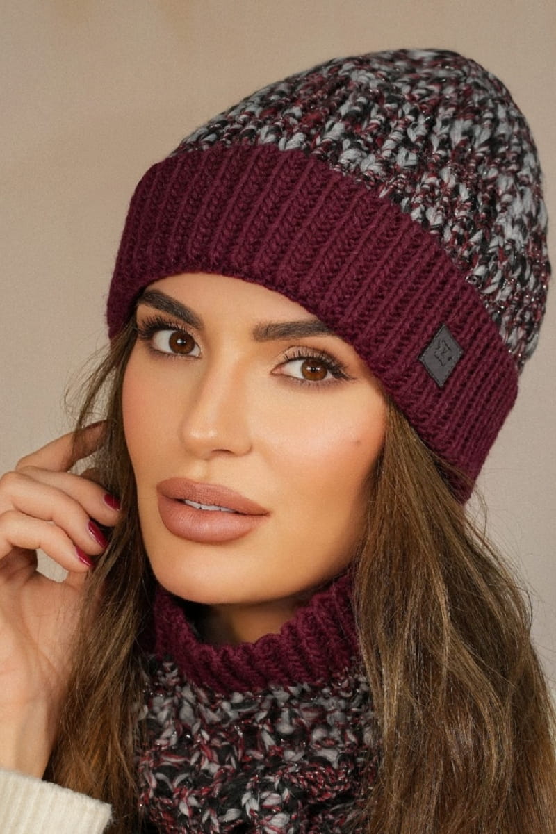 MORELA barwna młodzieżowa czapka z wywinieciem kolor bordowy