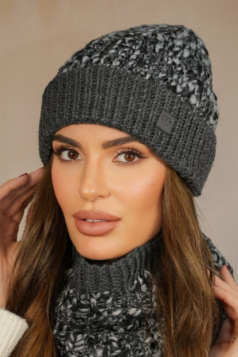 MORELA barwna młodzieżowa czapka z wywinieciem kolor grafitowy