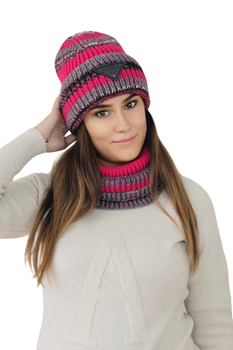 MUSCARI zimowa czapka w paski z cekinami kolor malinowy