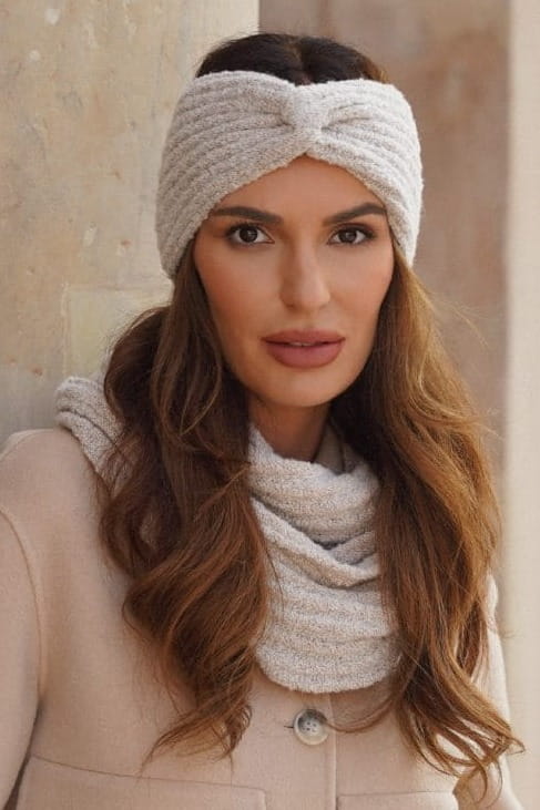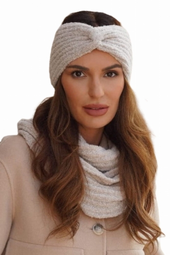 Komplet Opaska Z Kominem, Materiał Z Błyskiem Kolor Ekru Kamea- Boogi