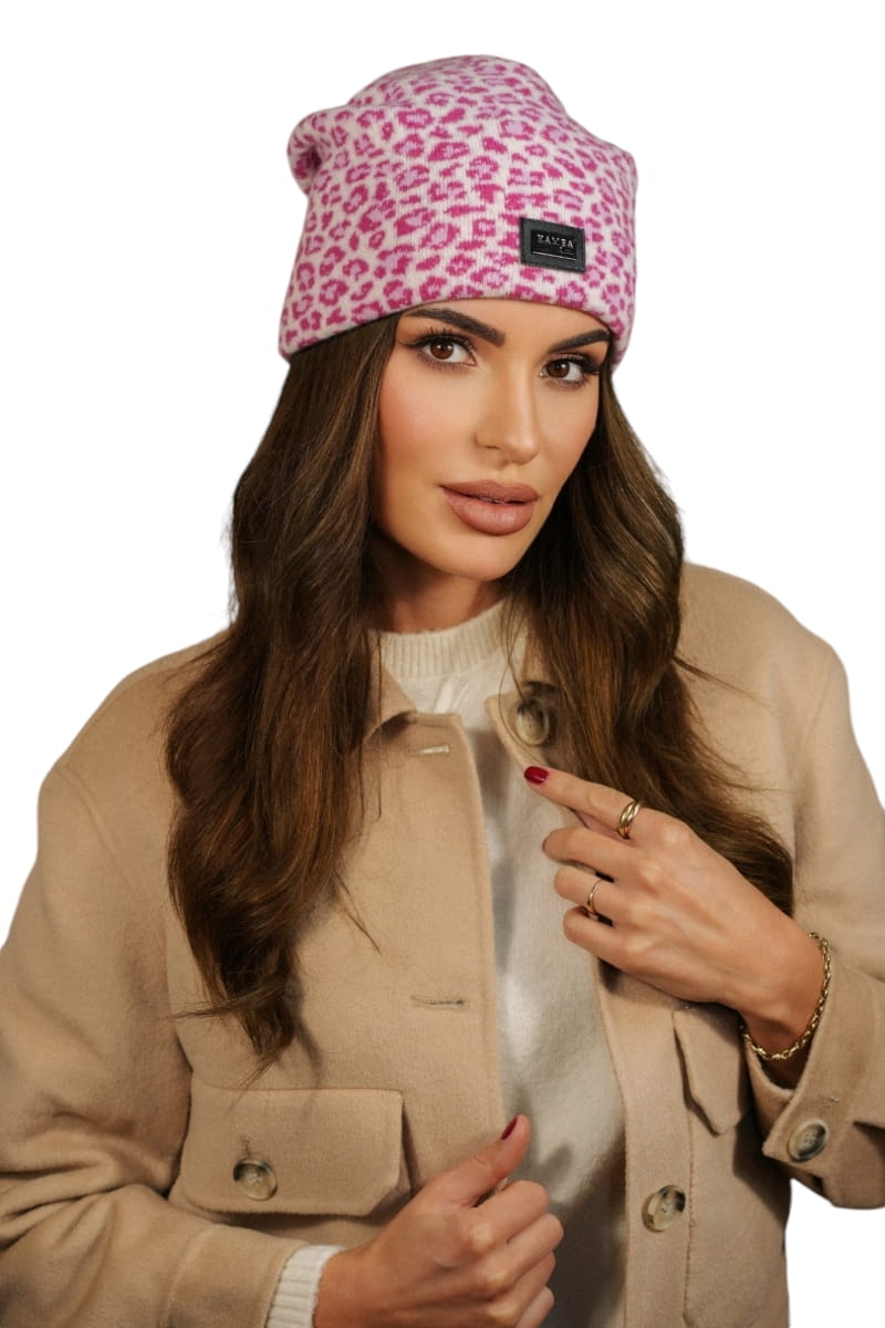 Panterka Wełniana Czapka Damska Logowana Kamea Kolor Różowy Panji