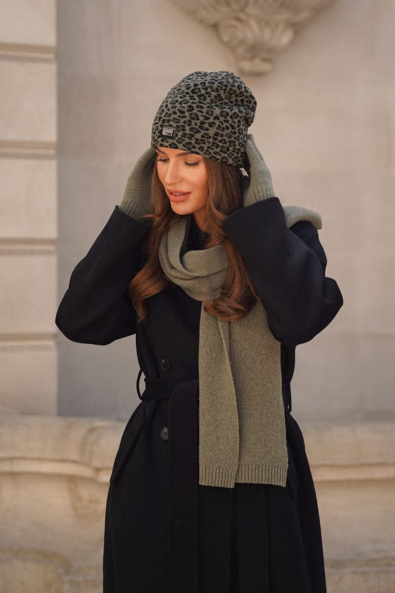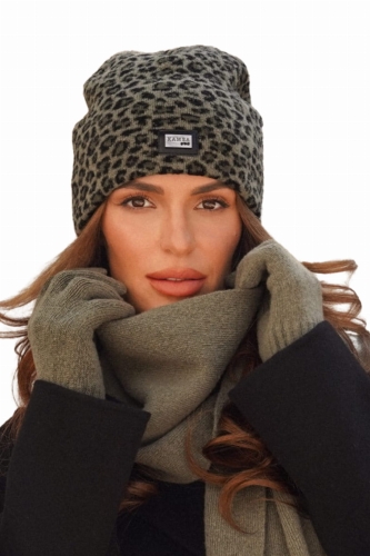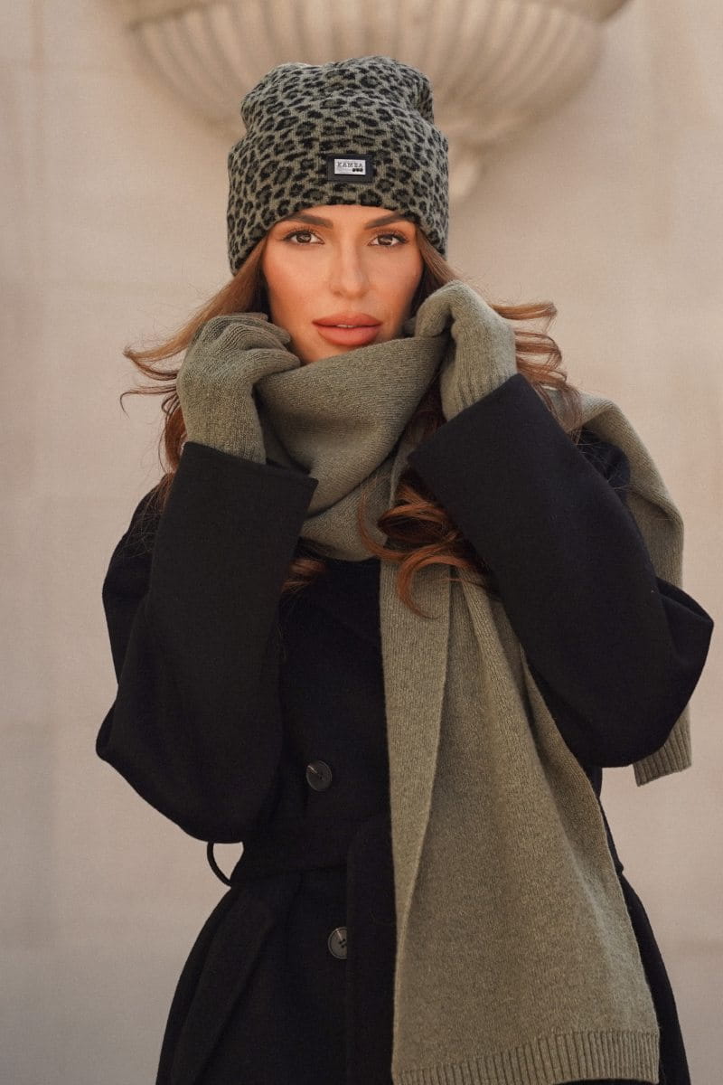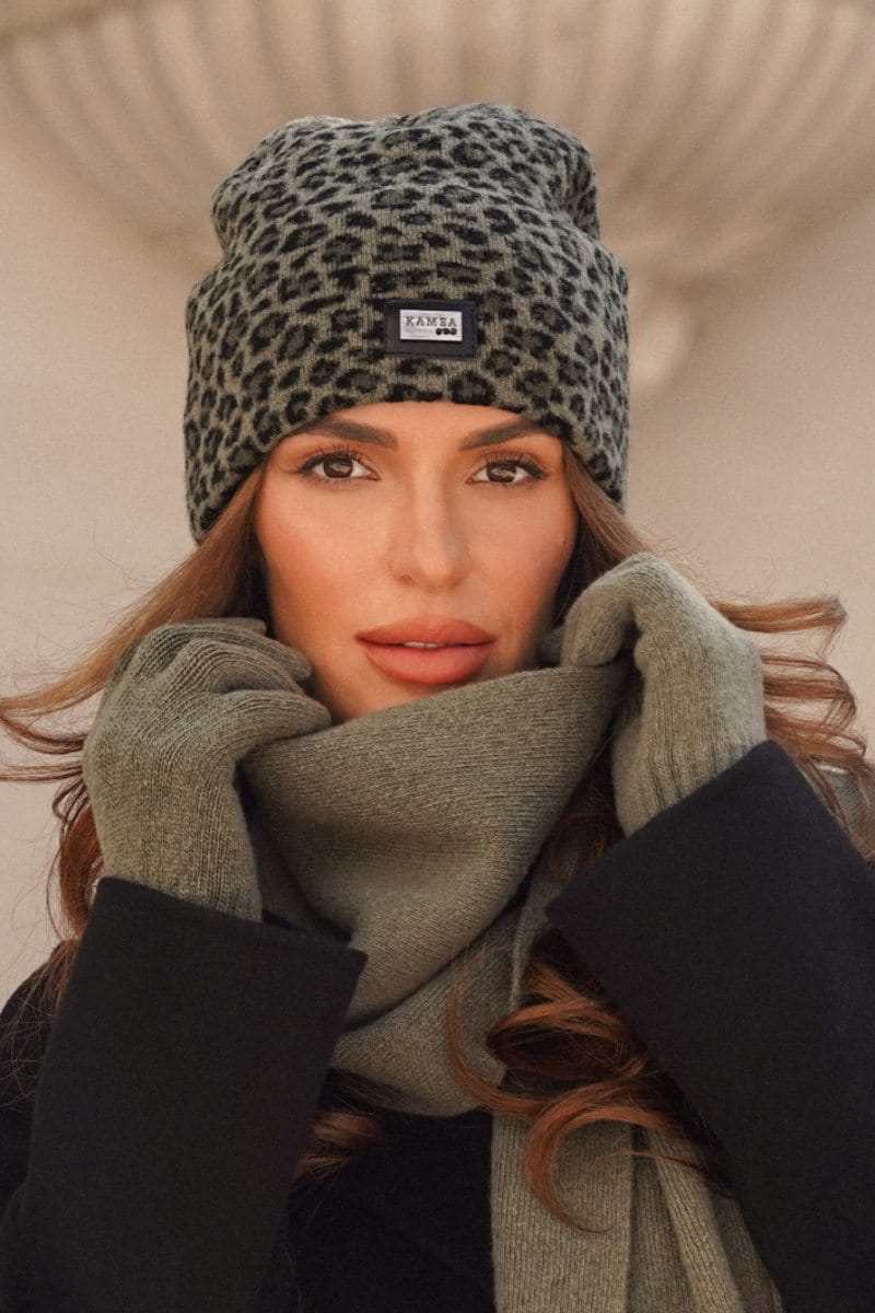 Panterka Wełniana Czapka Damska Logowana Kamea Kolor Khaki Panji