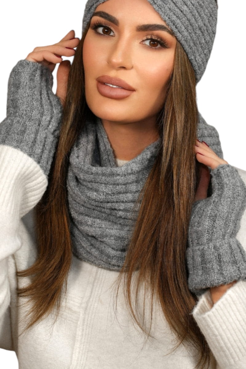 Komplet Opaska Z Kominem, Materiał Z Błyskiem Kolor Szary Kamea- Boogi