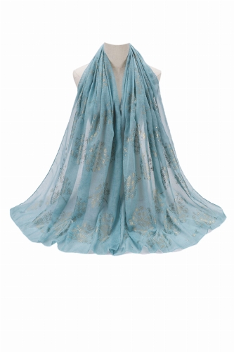 SZAL 180x70cm Golden Flower chusta na głowę hidżab zdobiony złotymi kwiatami w kolorze turkusowym