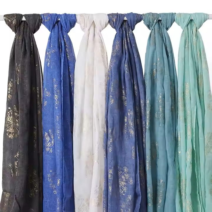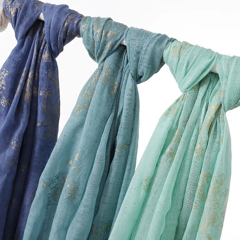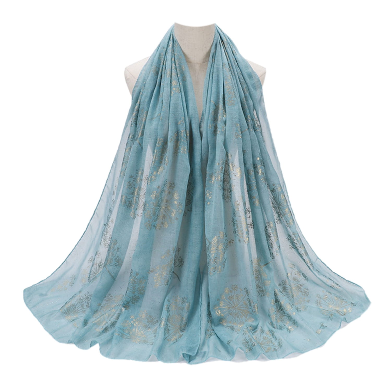 Producent KAMEASZAL 180x70cm Golden Flower chusta na głowę hidżab zdobiony złotymi kwiatami w kolorze jeansowym