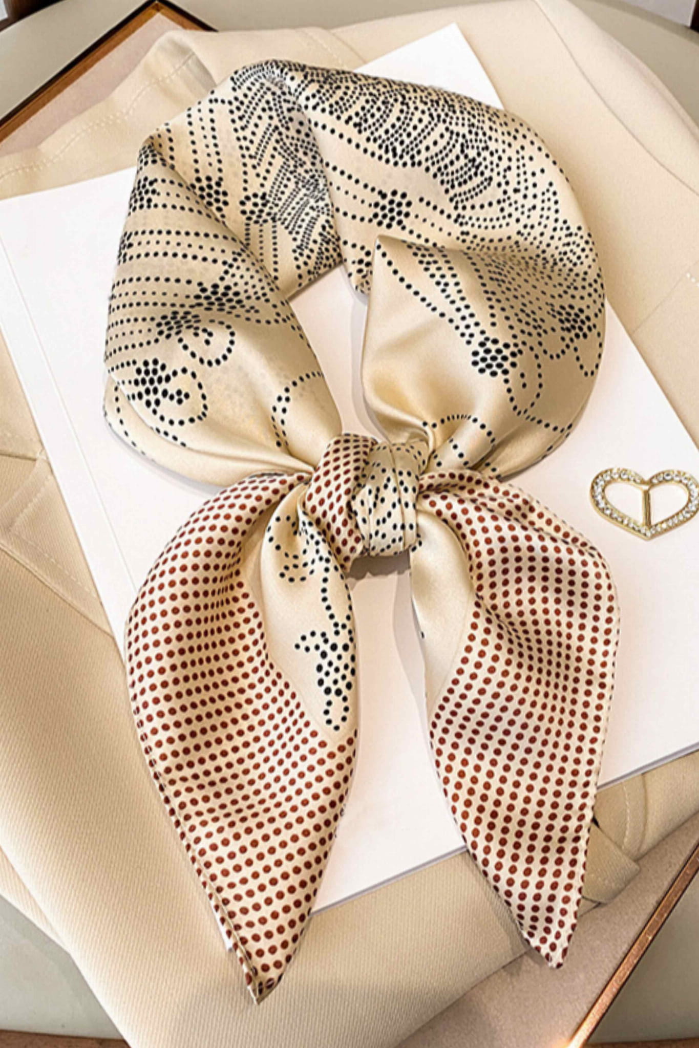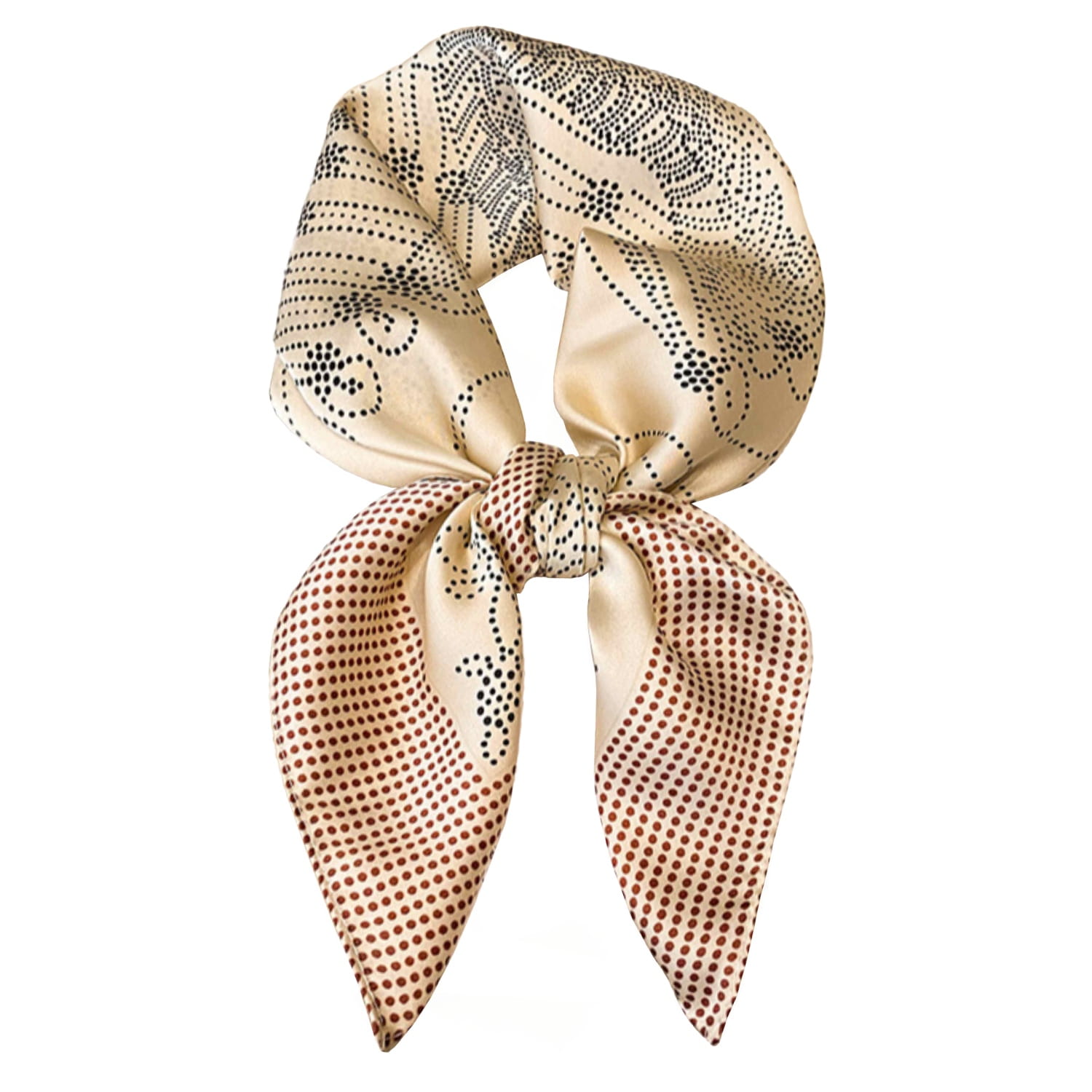 Satynowa apaszka damska – kremowa elegancja i graficzna precyzja