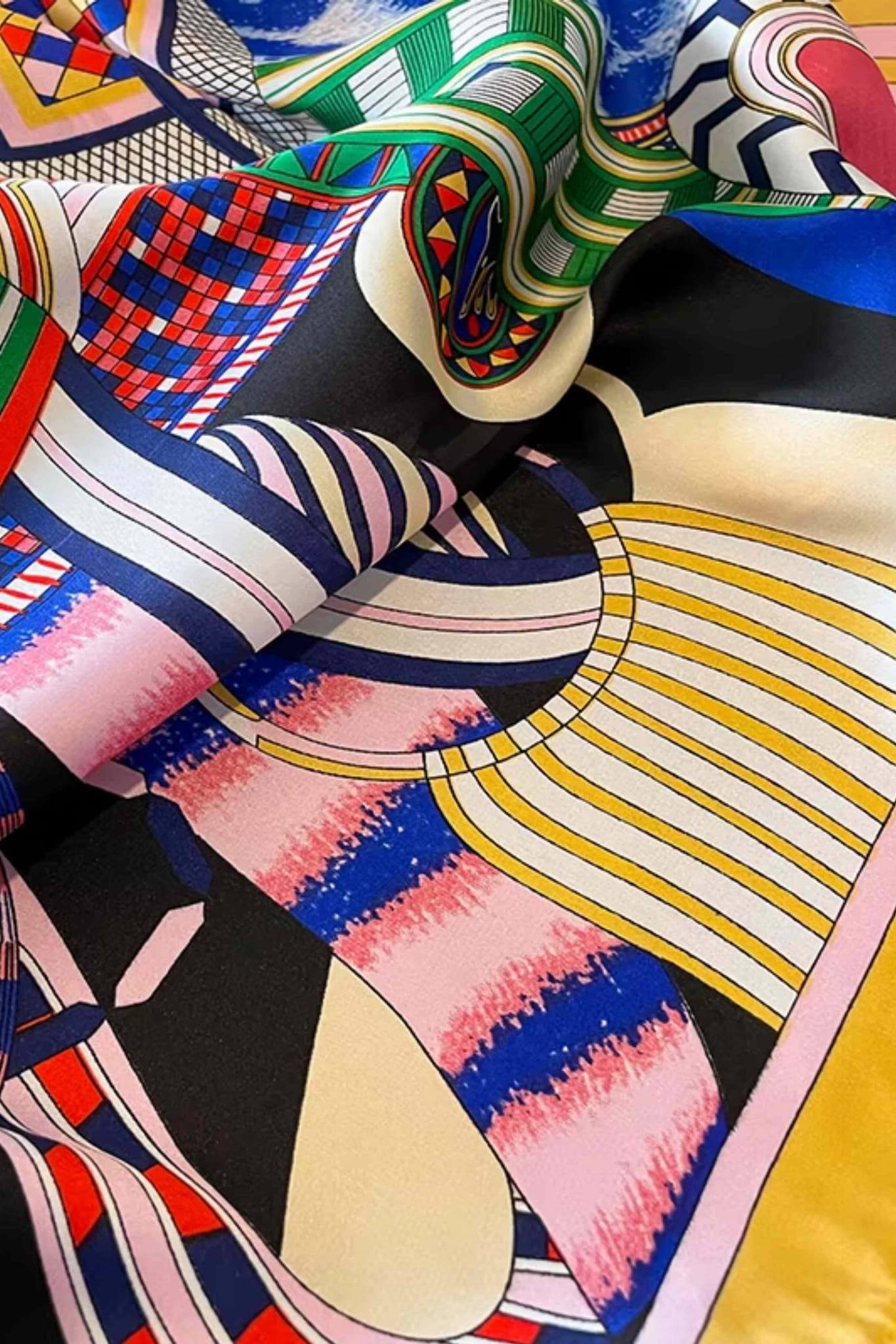 Odważna, artystyczna i niepowtarzalna – ta apaszka to połączenie motywu uprzęży jeździeckich z graficzną zabawą kolorem i wzorem. Kompozycja czerwieni, granatu, różu, zieleni i żółci na tle głębokiej czerni przyciąga wzrok i pozwala stworzyć oryginalną stylizację z modowym charakterem.
