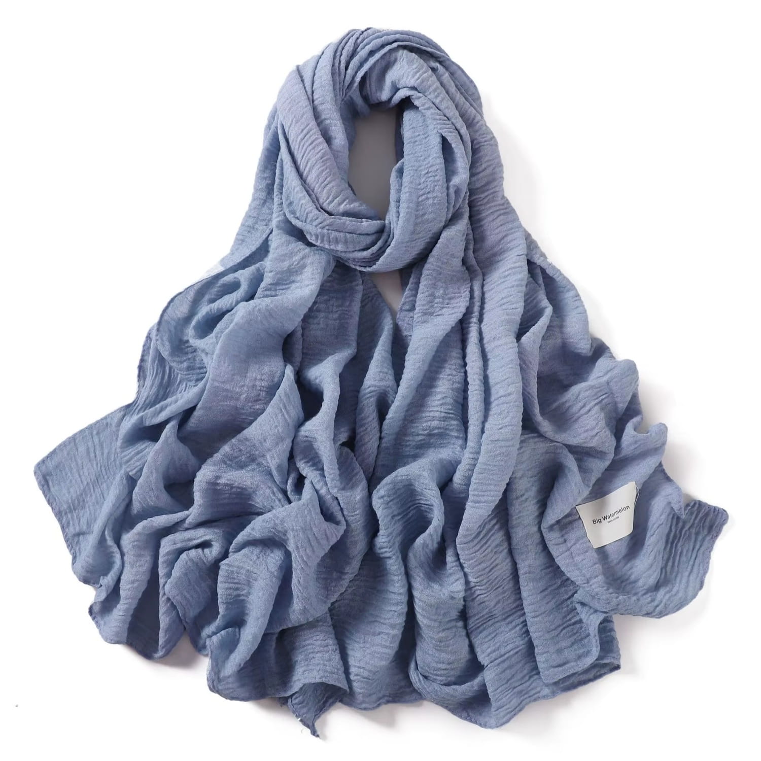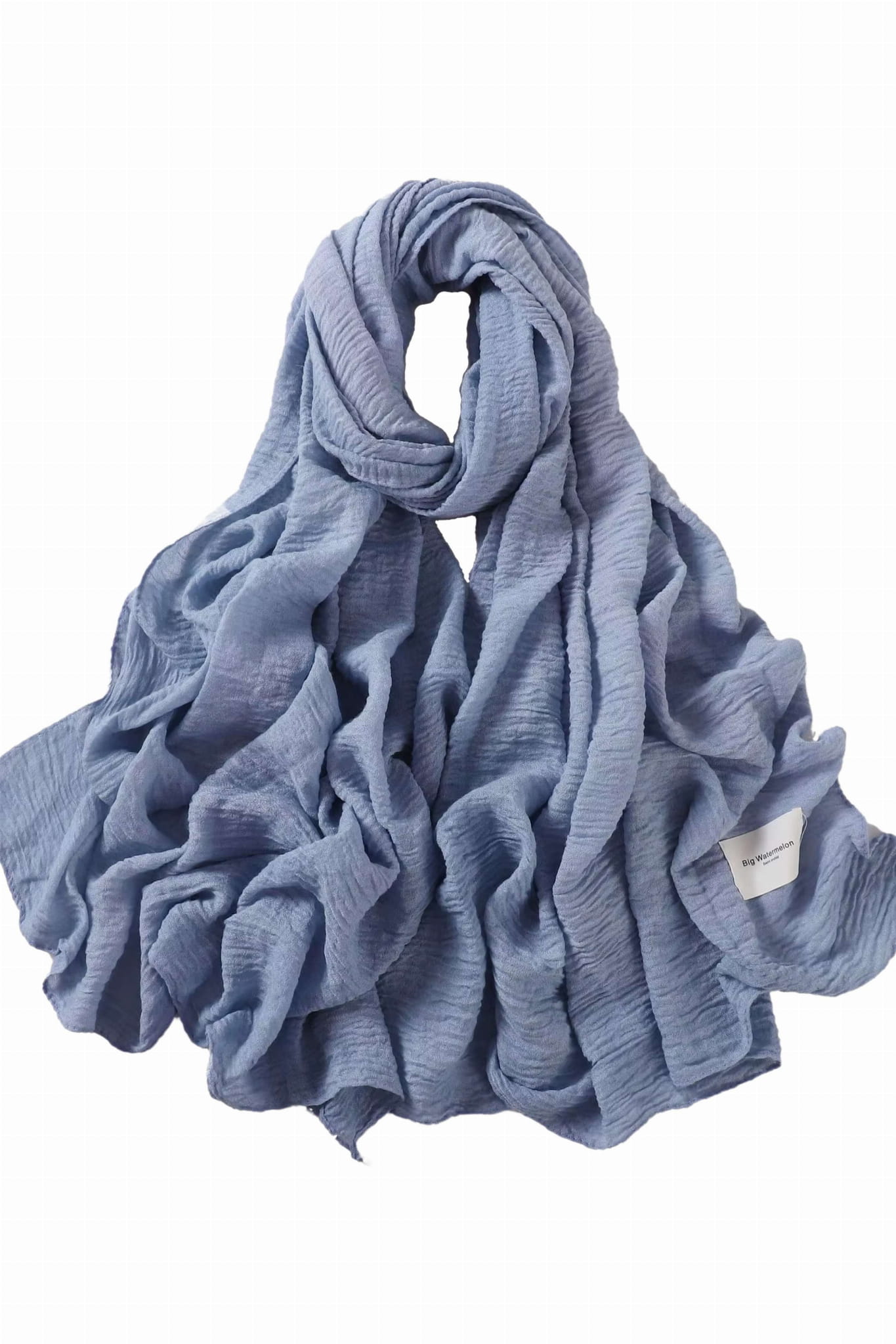 Stylowy szal w odcieniu chłodnego niebieskiego (błękit jeansowy) idealnie komponuje się z casualowymi i eleganckimi outfitami. Delikatna tłoczona faktura nadaje mu niebanalnego uroku, a miękka tkanina zapewnia komfort noszenia na co dzień.
