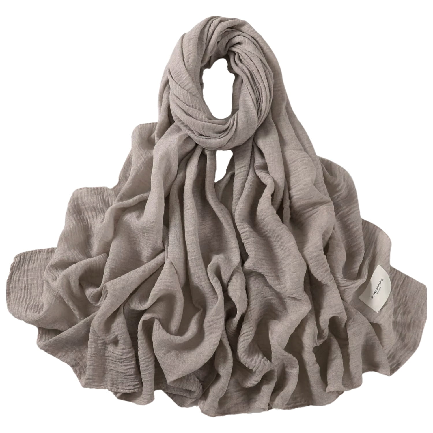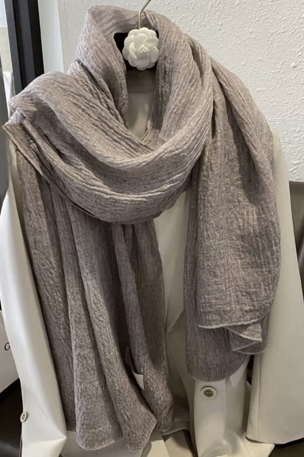 Szal w kolorze szarego beżu z tłoczoną fakturą – kobiecy i elegancki