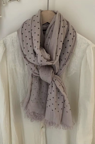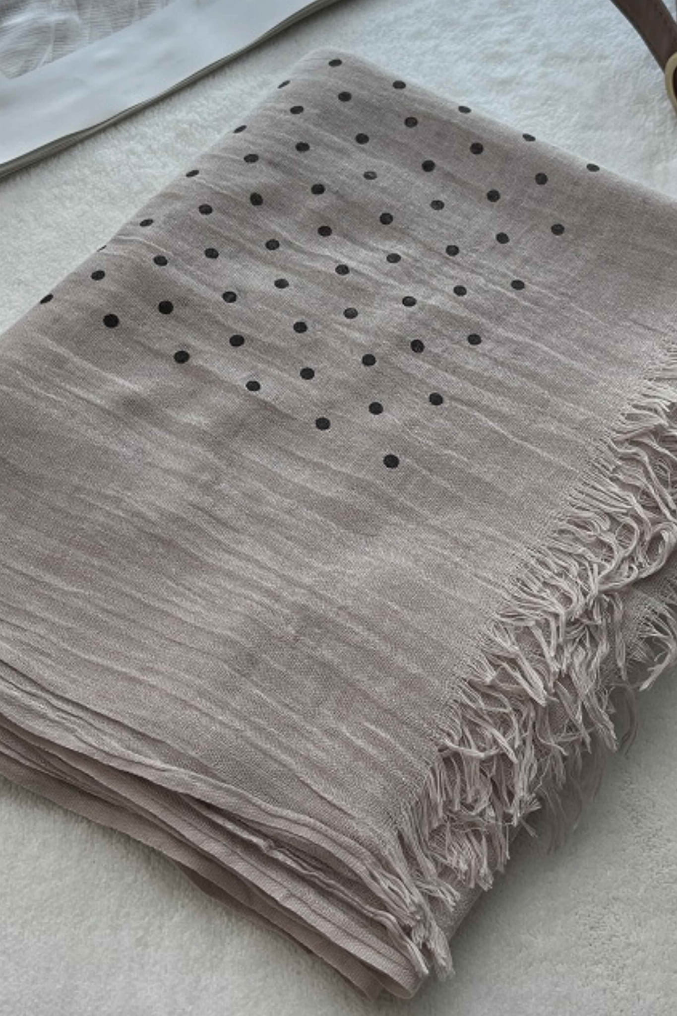 Szaro-beżowy szal w groszki – 50% wiskoza, 50% bawełna