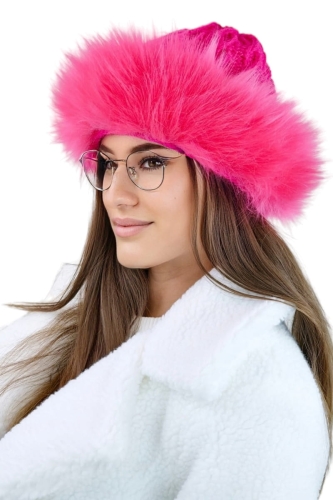 Wyjątkowa czapka, której charakteru dodaje eco futro, doszyte dookoła czapki na linii czoła. Czapka zrobiona interesującym splotem, przypominającym warkocz.
