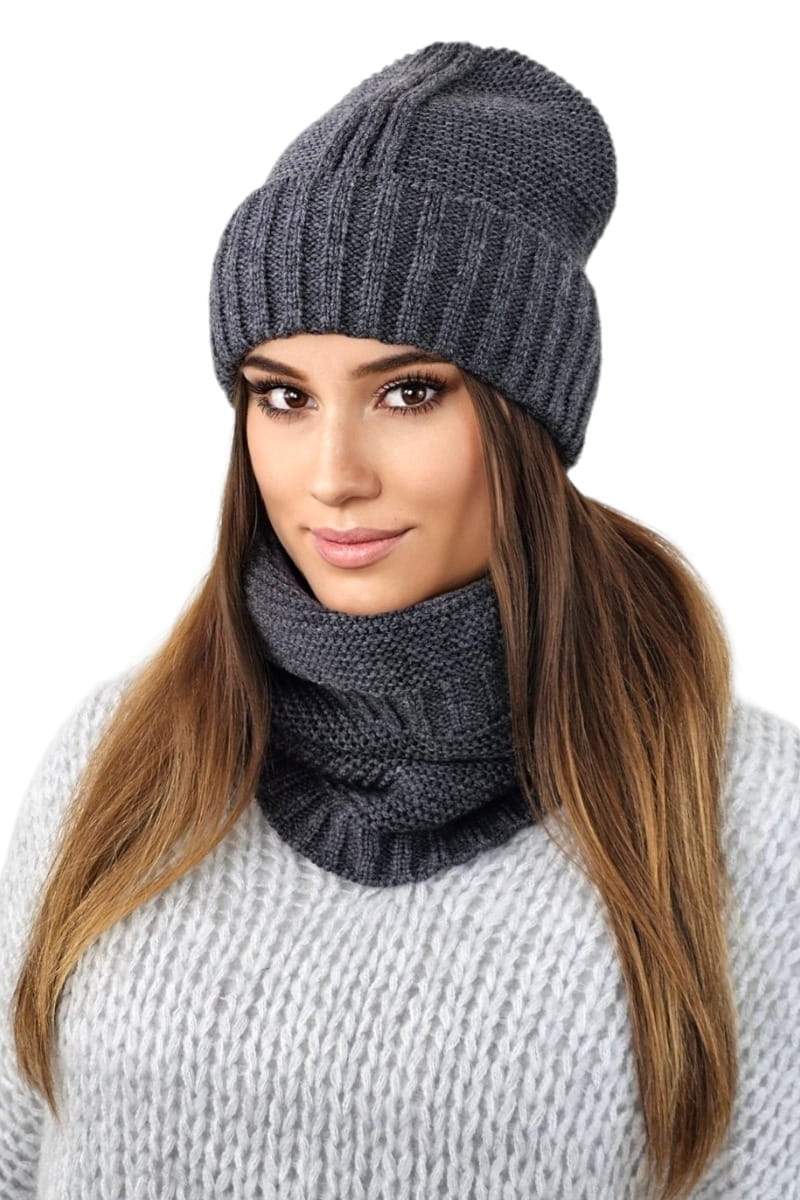 VERA damski komplet czapka z kominem kolor grafitowy