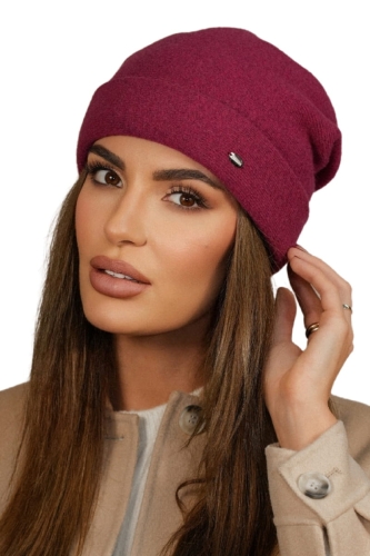 Wełniana Czapka Damska Z Wywinieciem W Kolorze Wino Kamea-Krokus