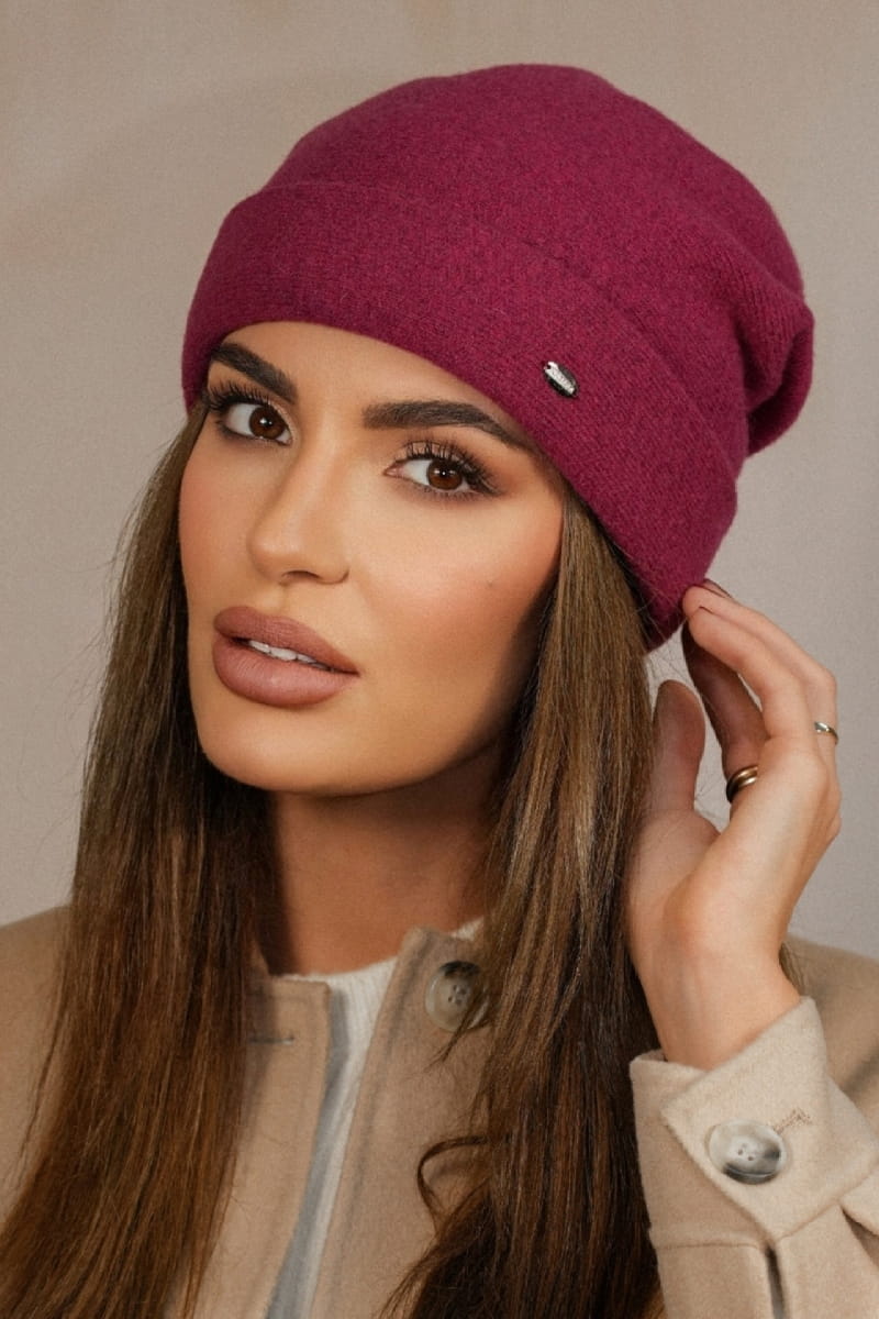 Wełniana Czapka Damska Z Wywinieciem W Kolorze Fuksja Kamea-Krokus