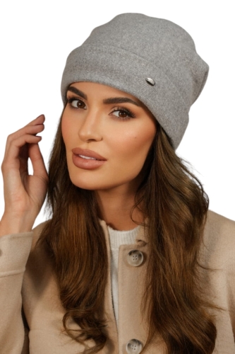 Wełniana Czapka Damska Z Wywinieciem W Kolorze Jasnym Szarym Kamea-Krokus