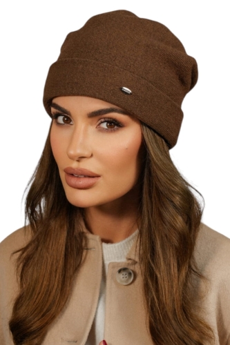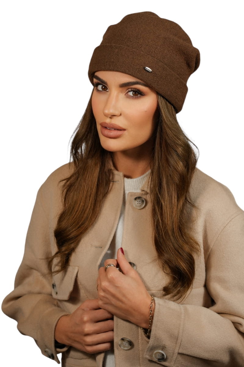 Wełniana Czapka Damska Z Wywinieciem W Kolorze Tabacco Kamea-Krokus