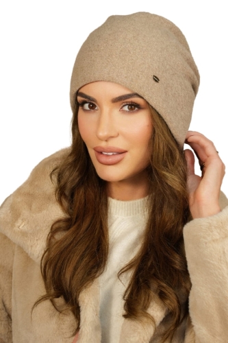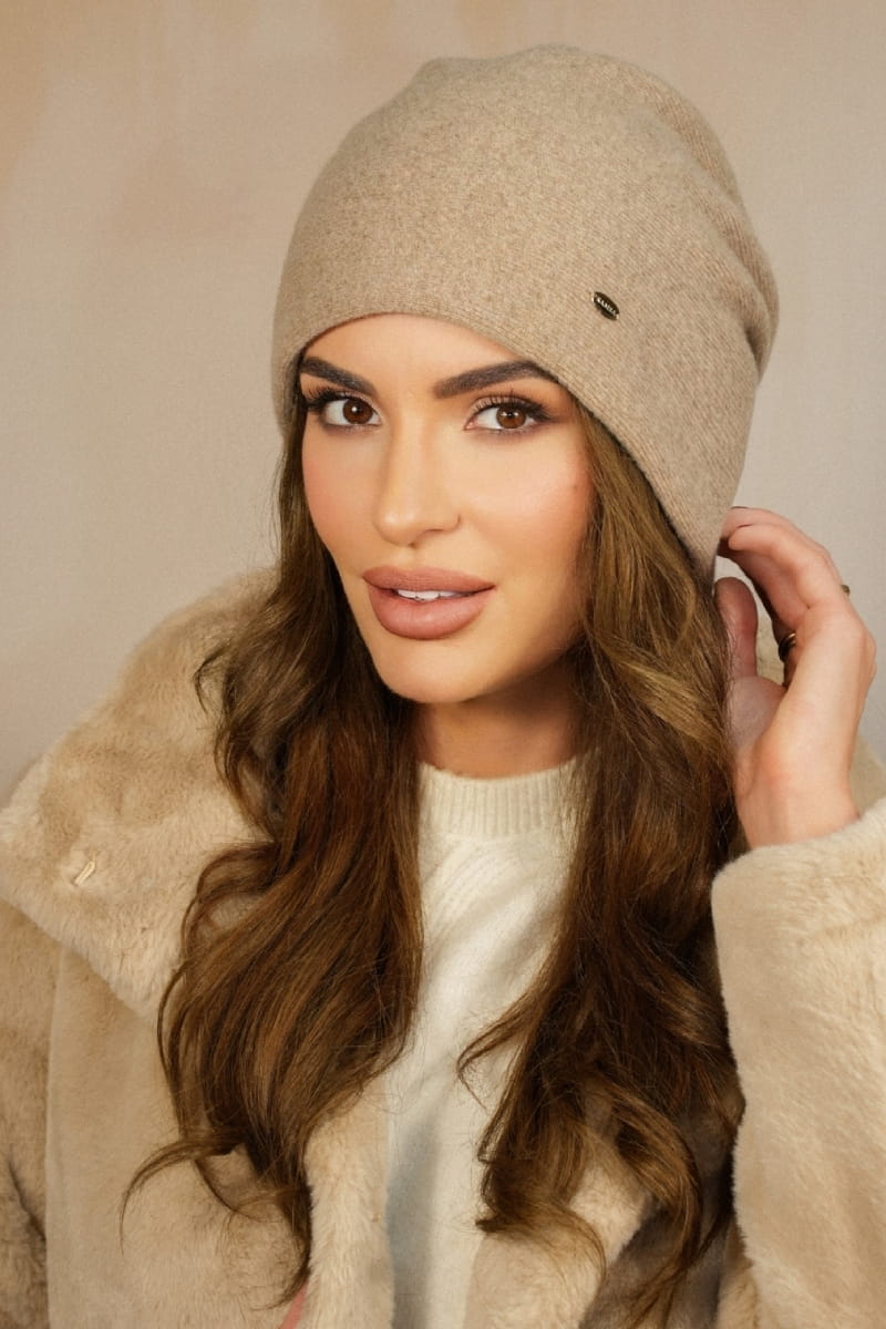 Wełniana Czapka Z Ciekawym Rozcieciem Z Tyłu W Kolorze Beżowym Kamea-Iris