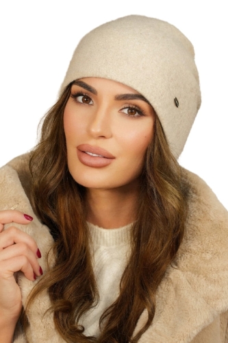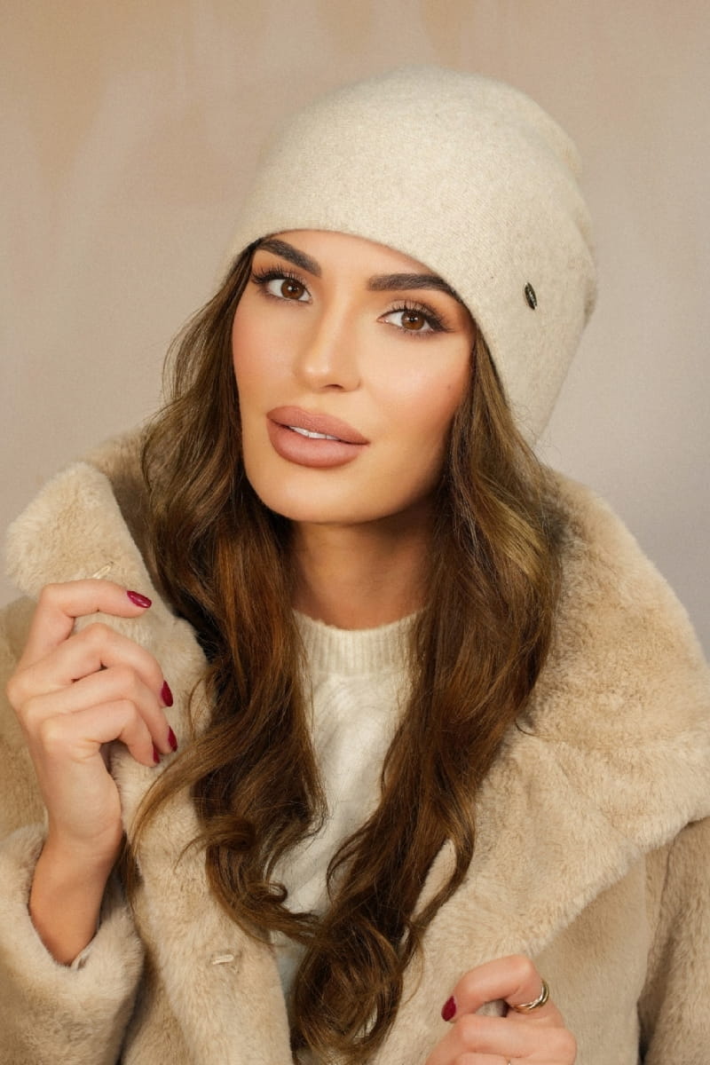 Wełniana Czapka Z Ciekawym Rozcieciem Z Tyłu W Kolorze Beżowym Kamea-Iris