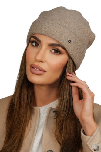 Wełniana Zimowa Czapka Damska Kolor Ciemny Beżowy Kamea-Krokus