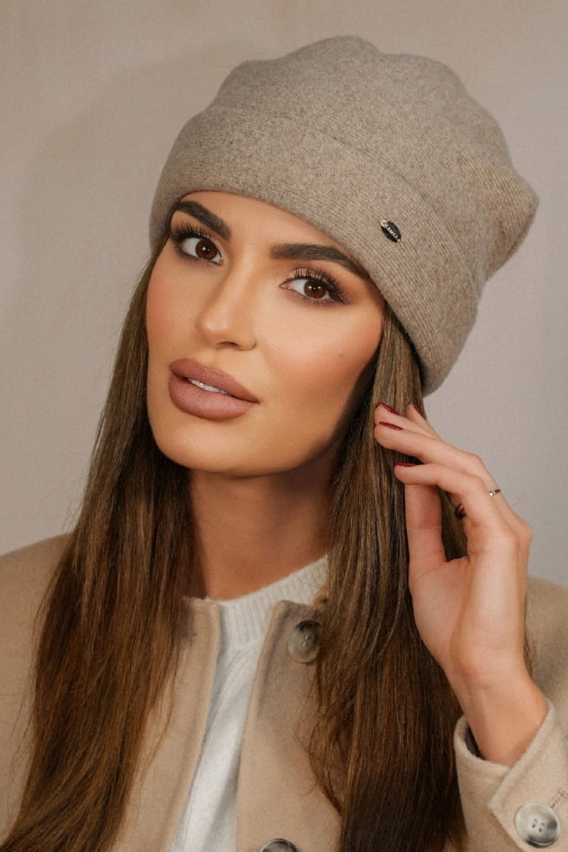 Wełniana Czapka Damska Z Wywinieciem W Kolorze Piaskowym Kamea-Krokus