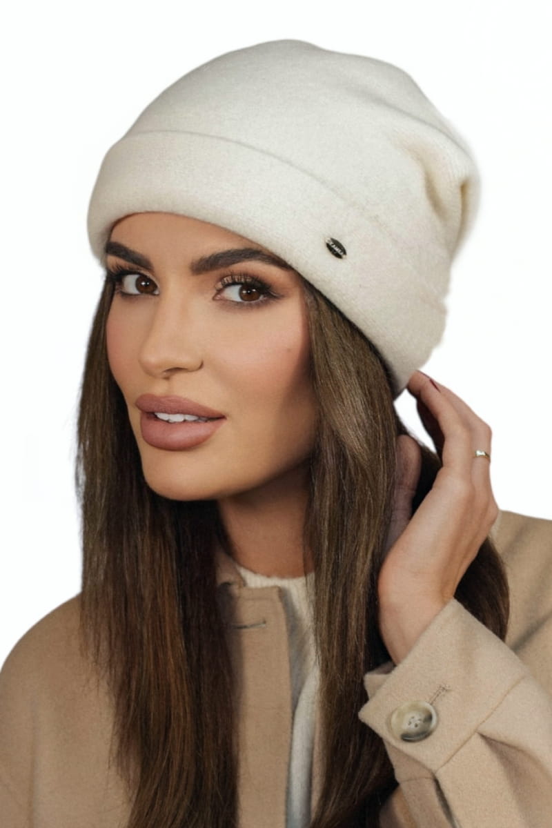 Wełniana Zimowa Czapka Damska Kolor Ekru Kamea-Krokus