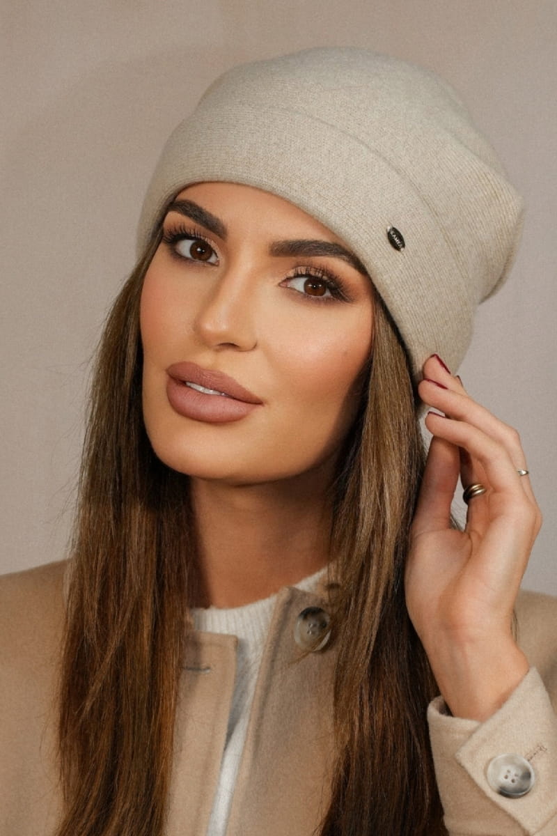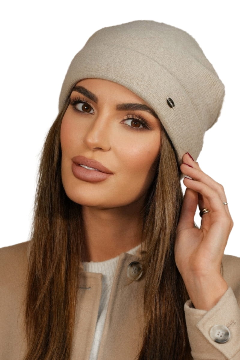 Wełniana Zimowa Czapka Damska Kolor Jasny Beżowy Kamea-Krokus