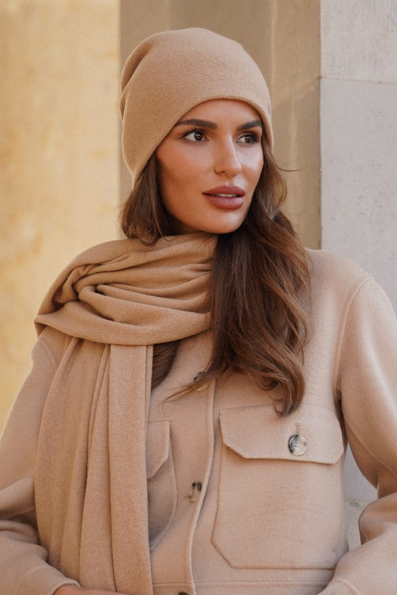 Dla pełnego efektu polecamy pasujący szalik (model 01 lub 02) oraz rękawiczki (model 01), tworząc harmonijny i modny komplet na chłodne dni.
