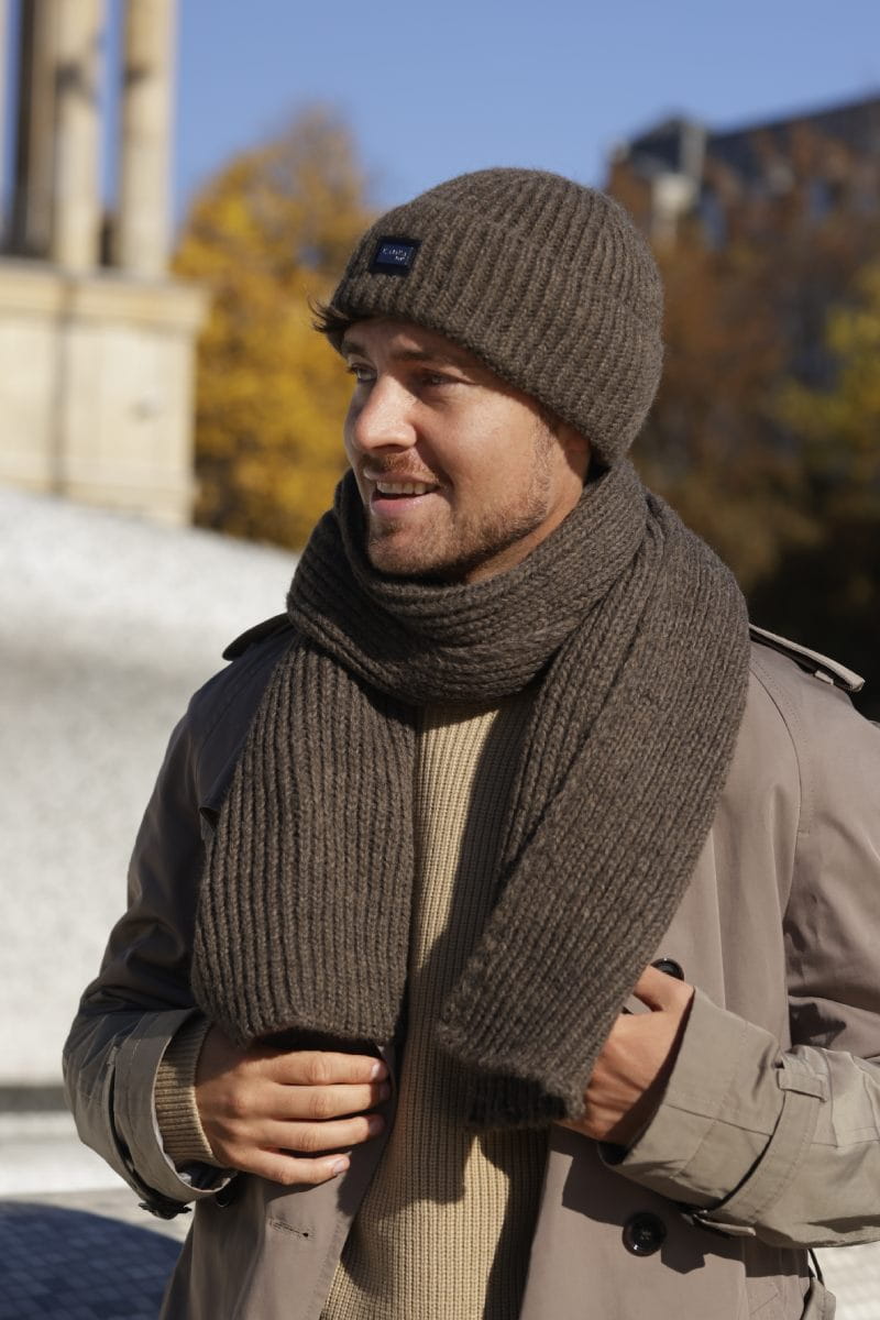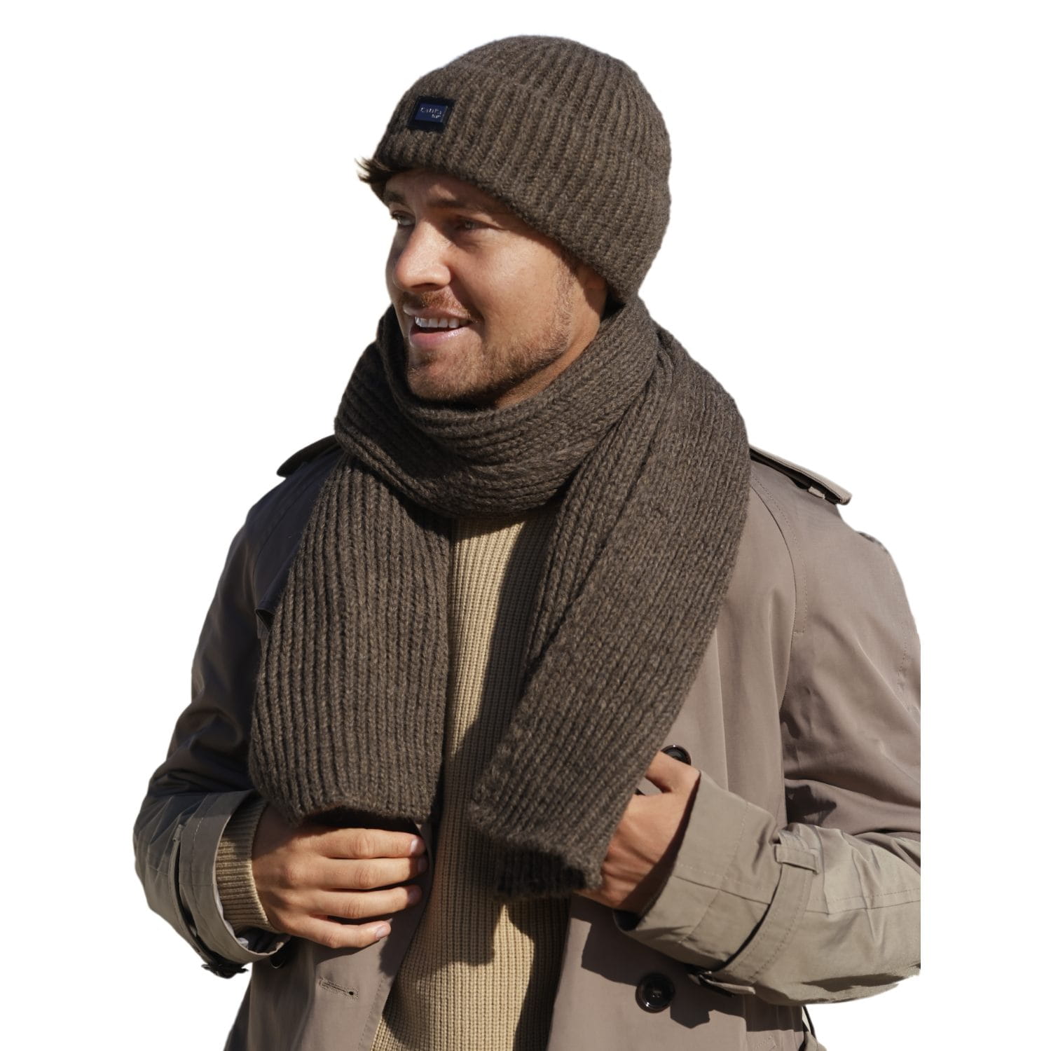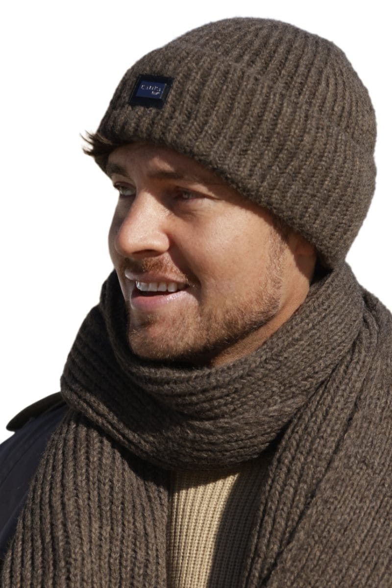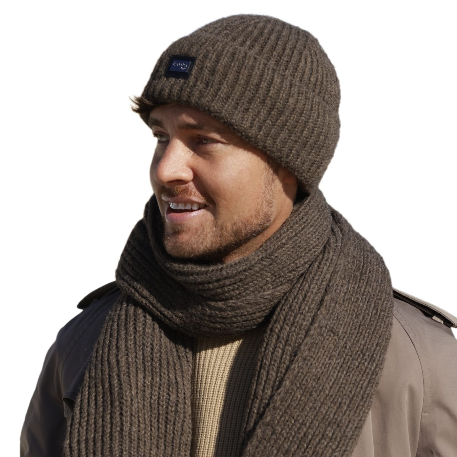 Komplet męski MARTIN — czapka i szalik brązowy | KAMEA