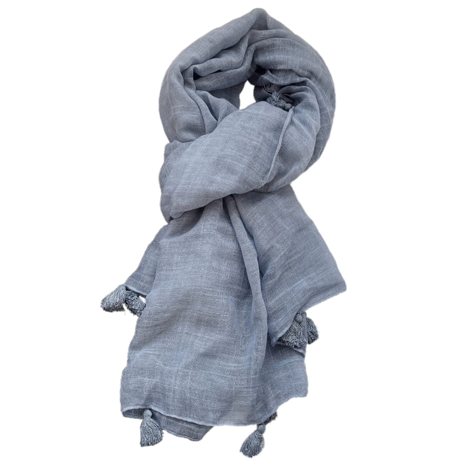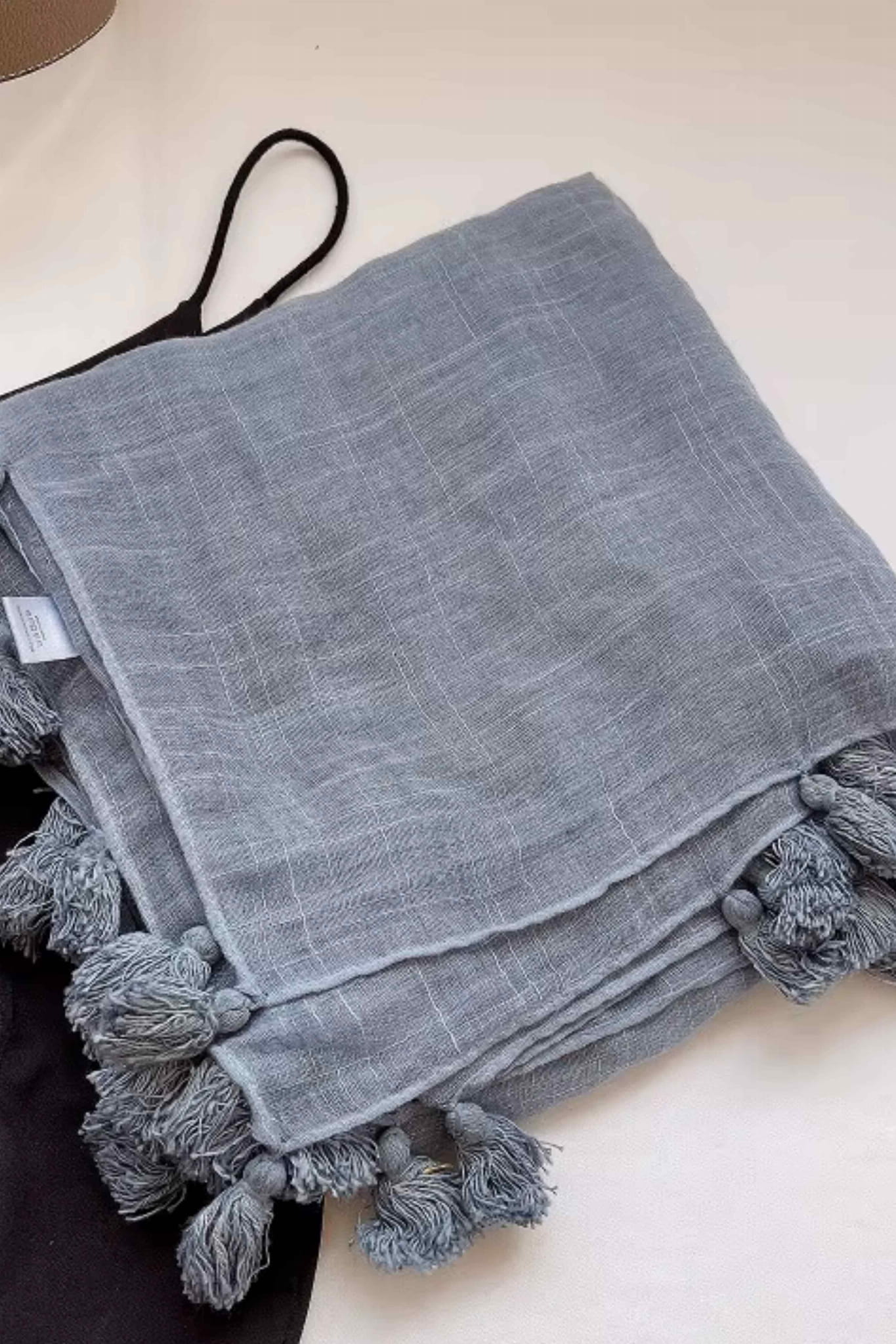 Zgaszony błękit – szal z frędzlami w stonowanym, eleganckim kolorze