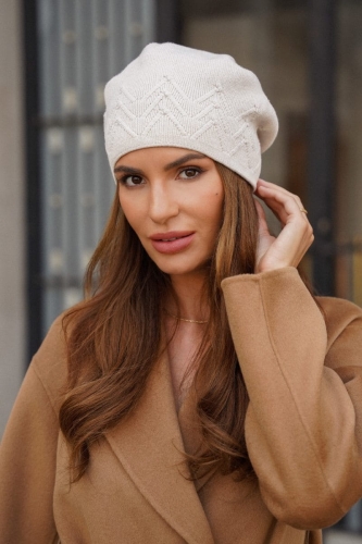 Zimowa Czapka Damska Kolor Beżowy Kamea-Baihe