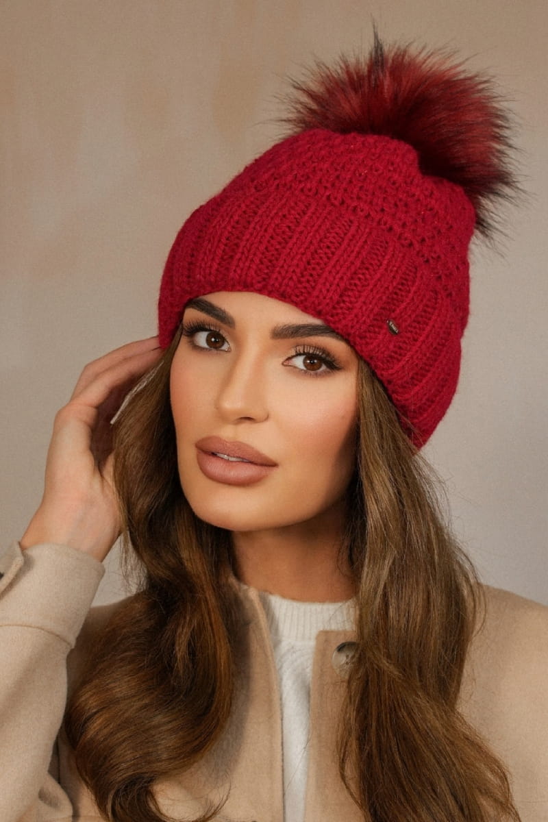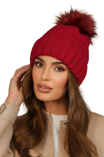Zimowa Czapka Damska Kolor Czerwony Kamea-Furja Z Eco Pomponem