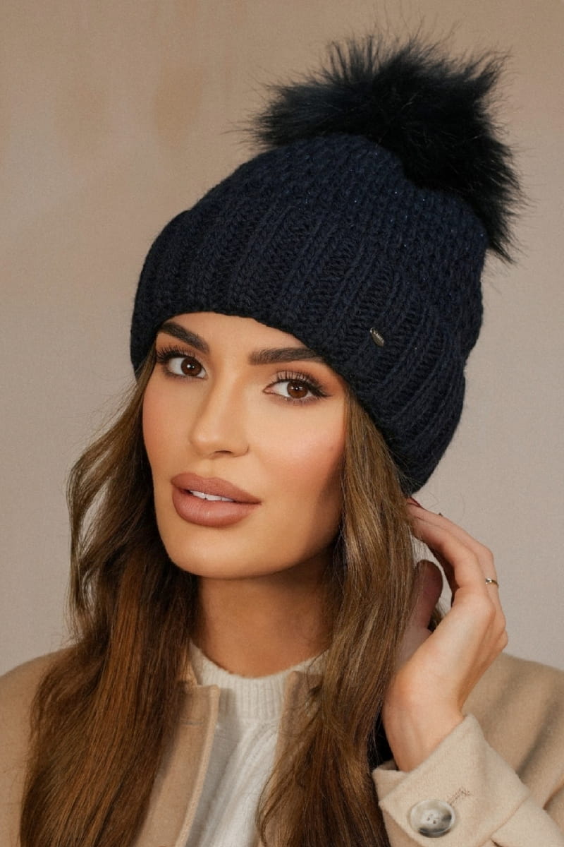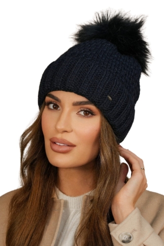 Zimowa Czapka Damska Kolor Granatowy Kamea-Furja Z Eco Pomponem