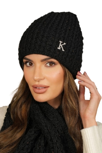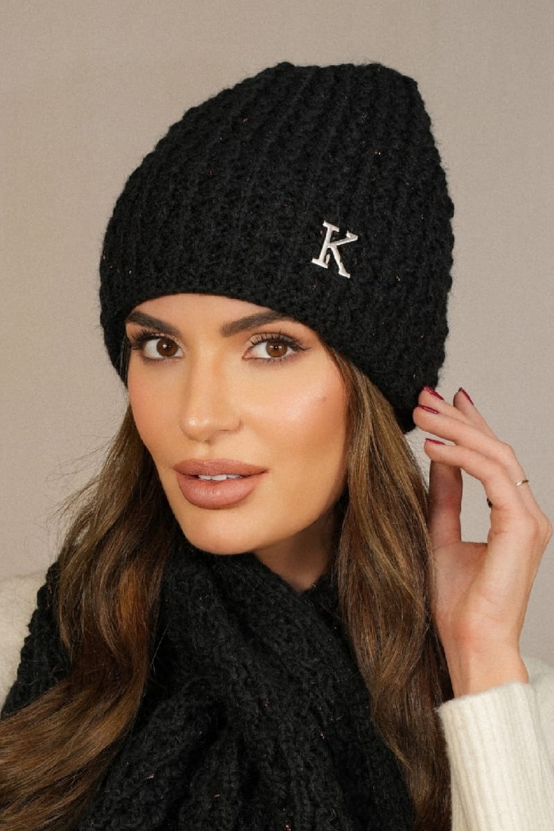 Zimowa Czapka Z Lurexem Ozdoobiona Literką "K" Kolor Czarny Kamea-Kosmos