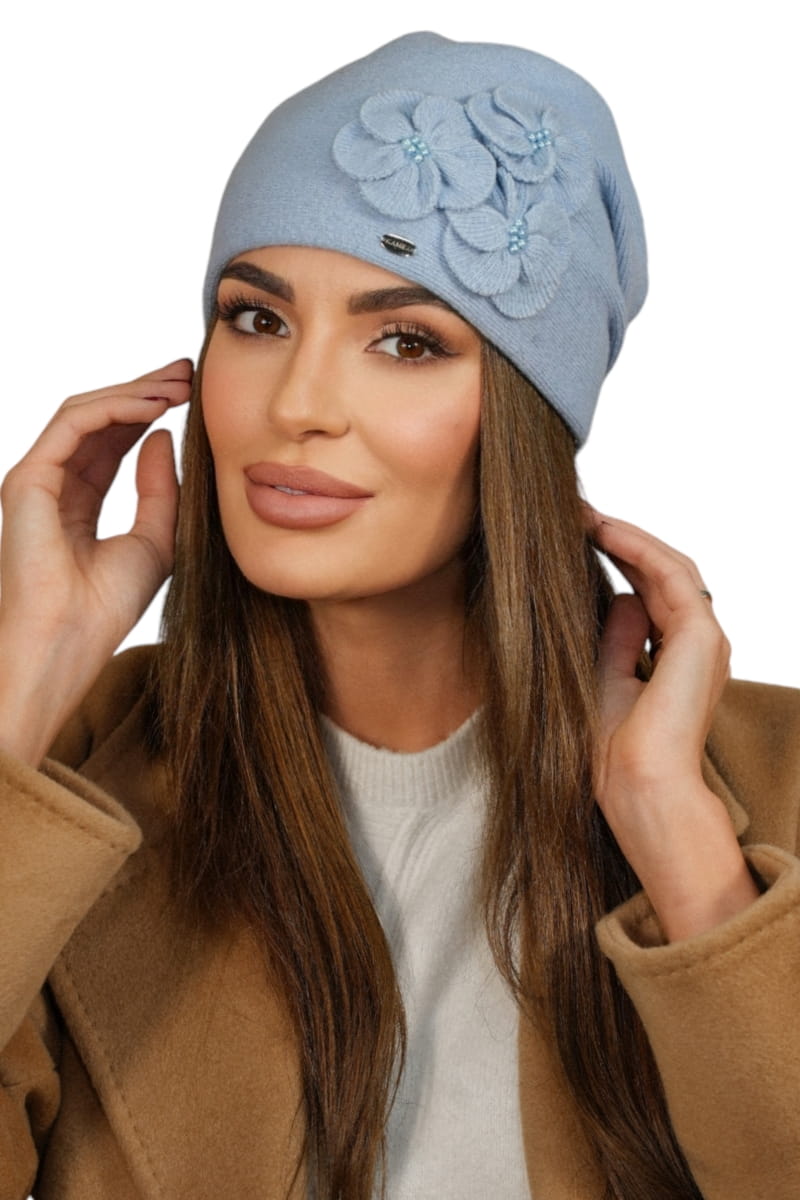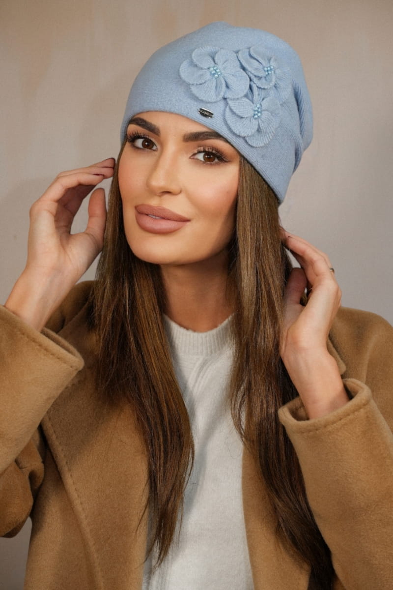 Zimowa Wełniana Czapka Damska Kolor Jasny Niebieski Kamea-Ambrozja