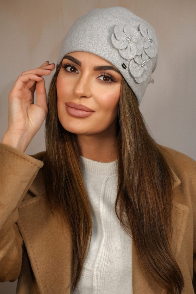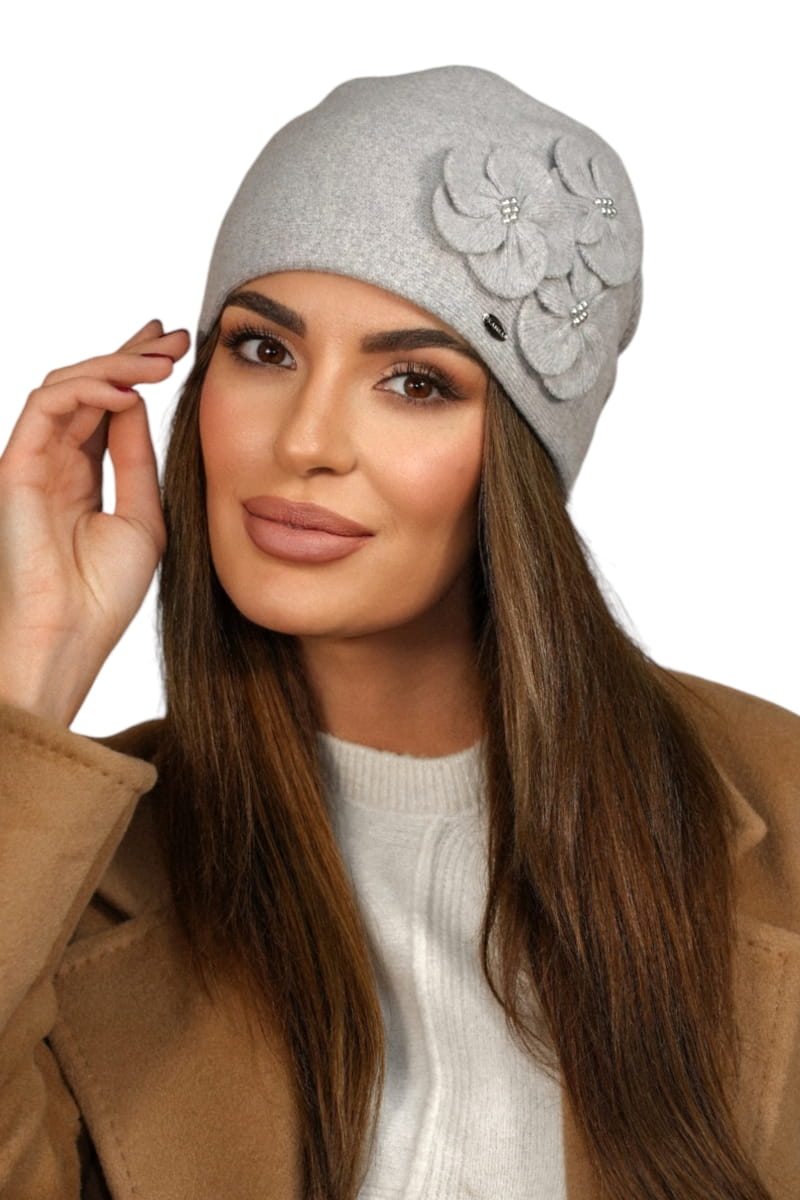Zimowa Wełniana Czapka Damska Kolor Jasny Szary Kamea-Ambrozja
