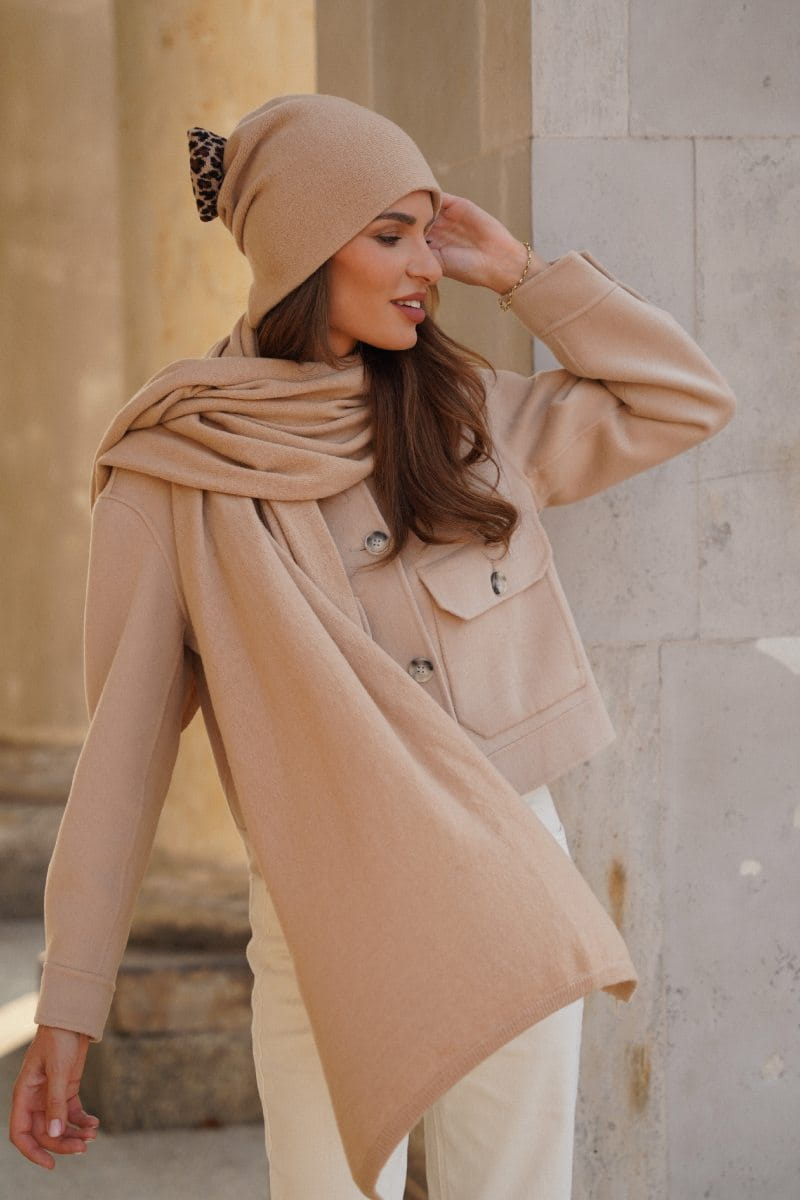 Do kompletu doskonale pasują szalik 01 lub 02 oraz rękawiczki 01, tworząc spójną i modną całość.