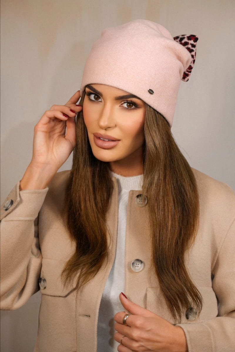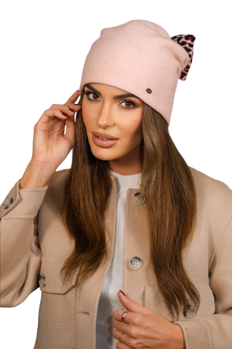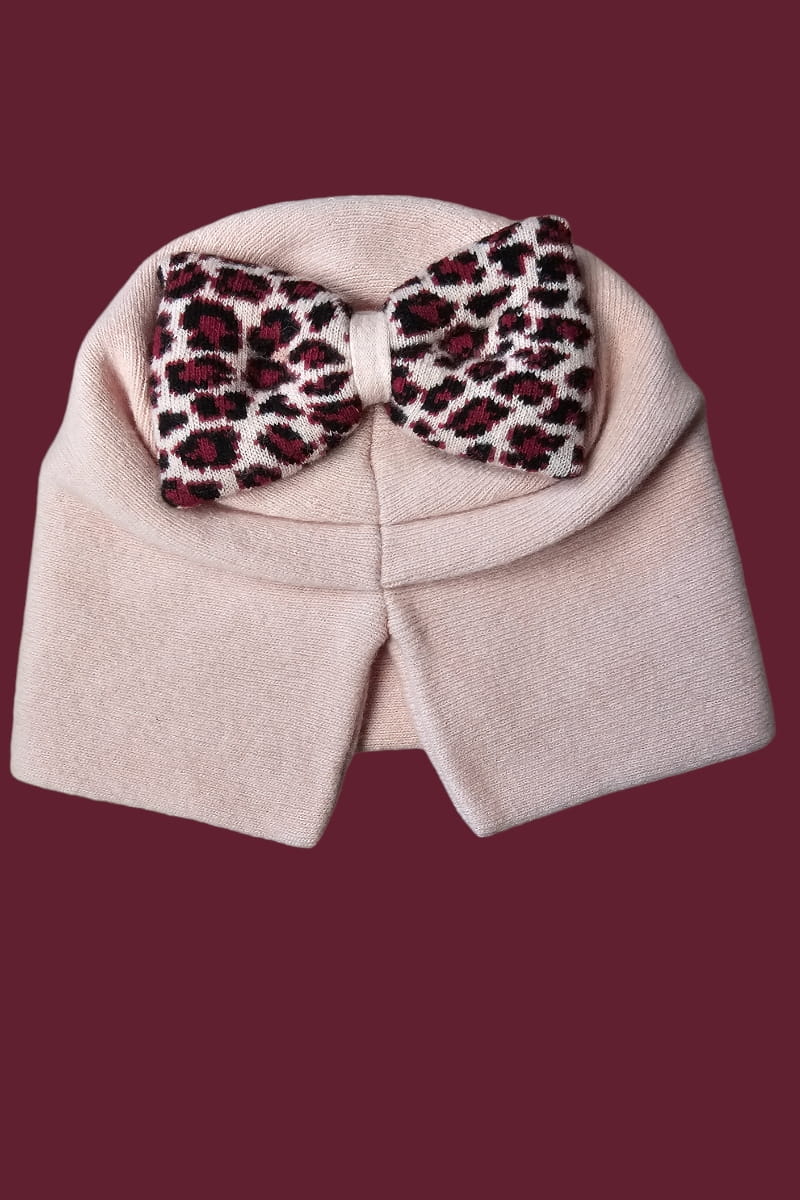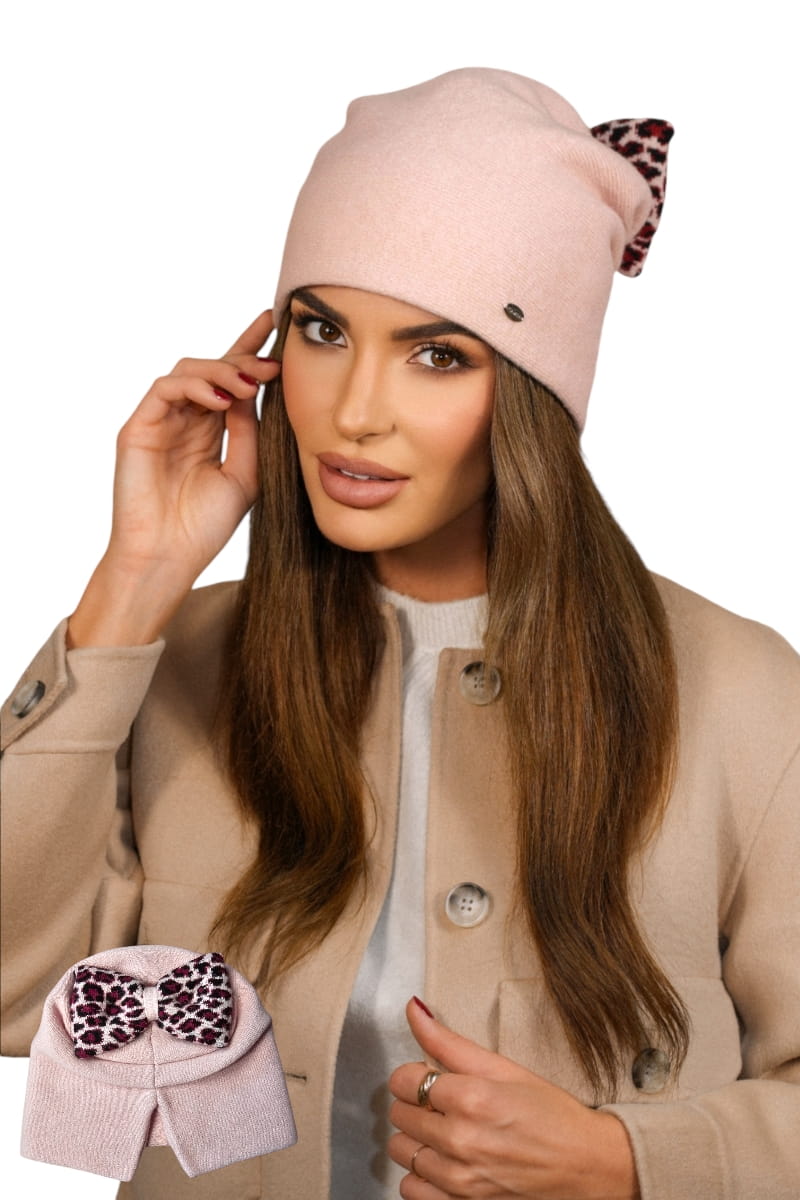 Zimowa Wełniana Czapka Z Kokardą W Panterkę Kolor Różowy Kamea-Kiku